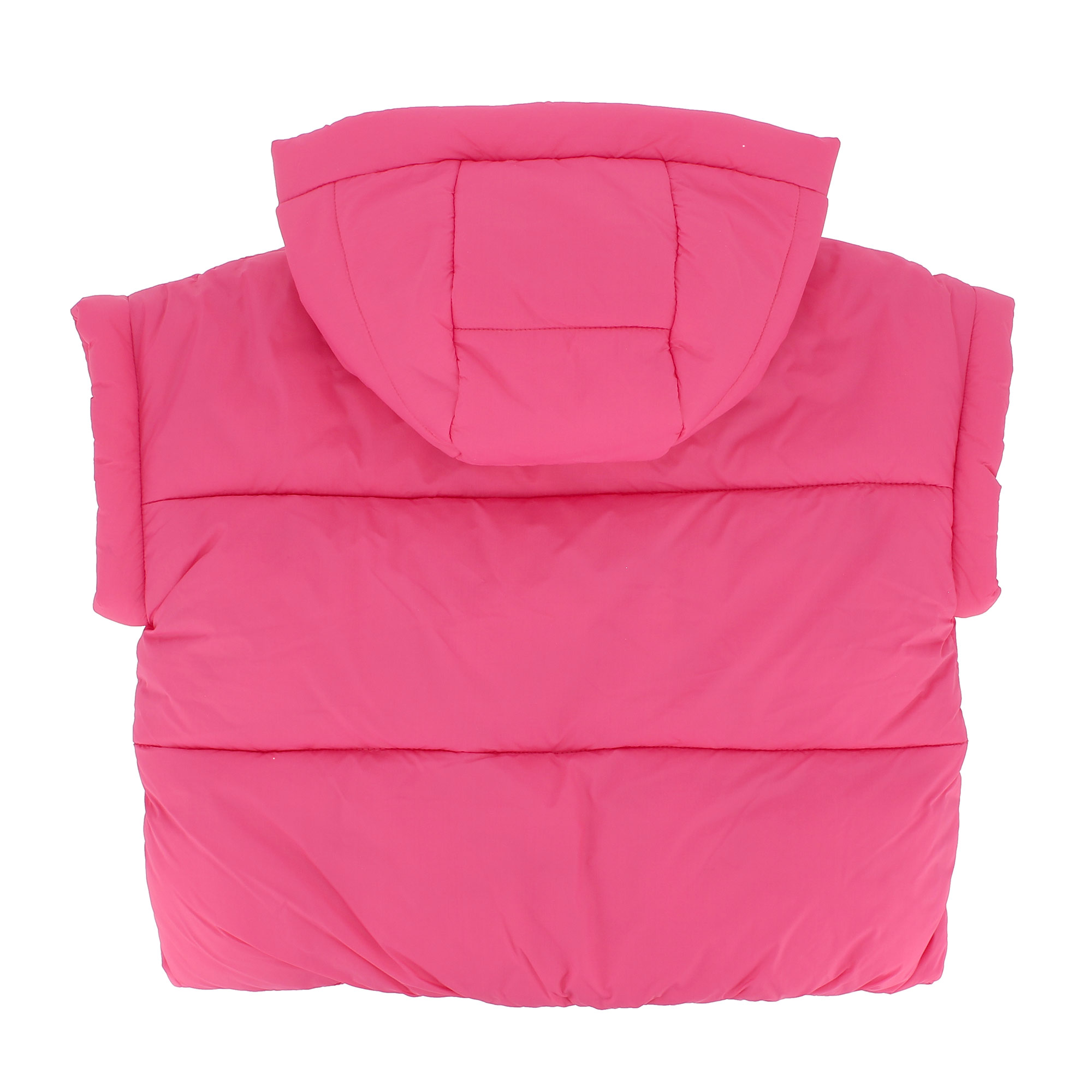 Gilet in nylon con cappuccio. Chiusura con zip e bottoni automatici sul davanti. Tasche anteriori.