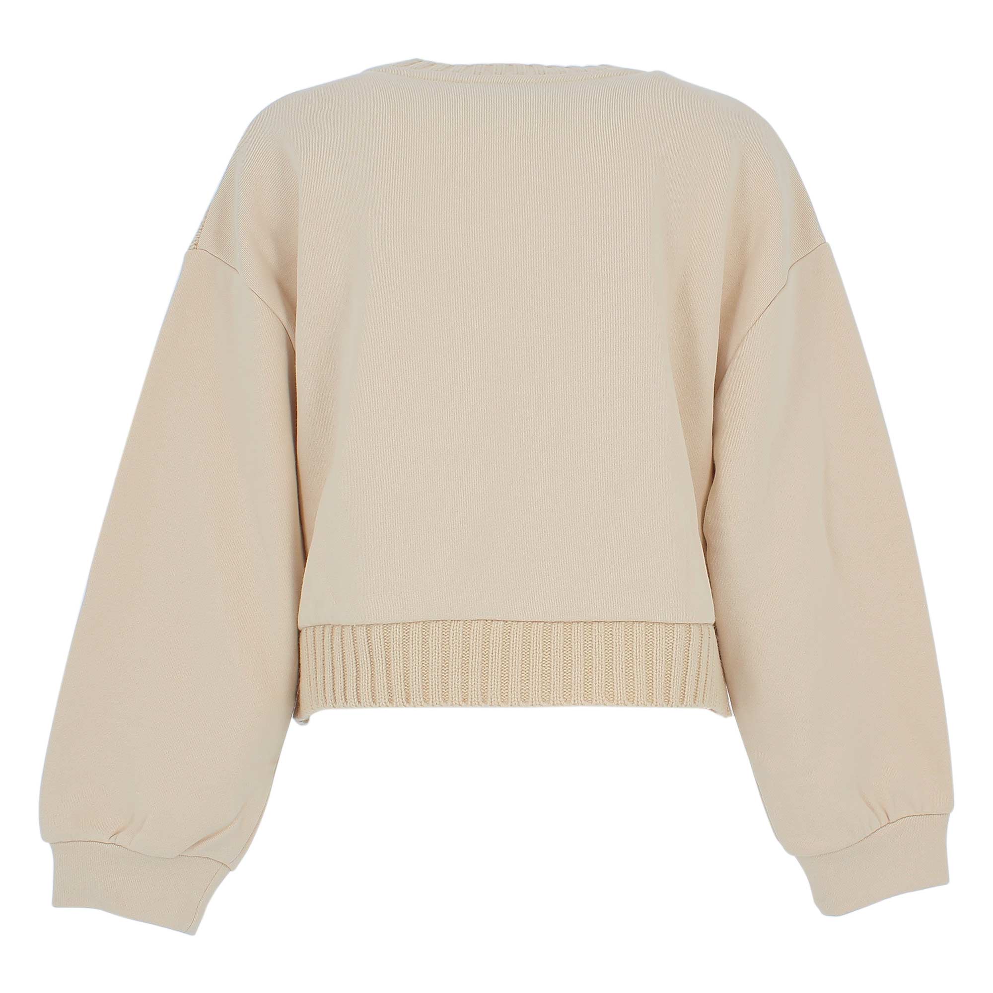Pullover cropped in maglia a trecce girocollo, con maniche lunghe in felpa. Parte posteriore in felpa.
