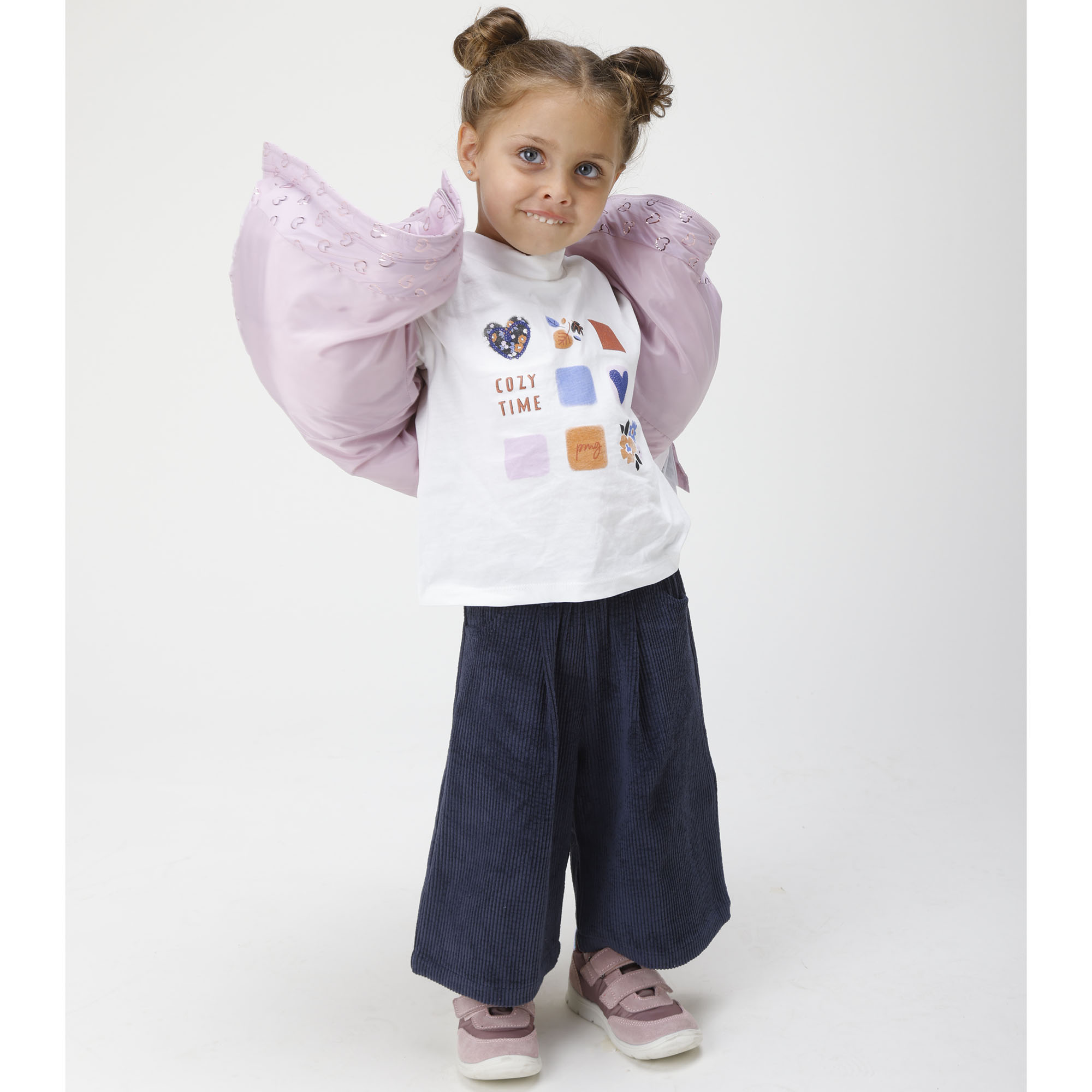 Pantalone culotte in velluto a coste con vita elasticizzata. Tasche laterali, tasche posteriori a toppa e passanti sulla vita.