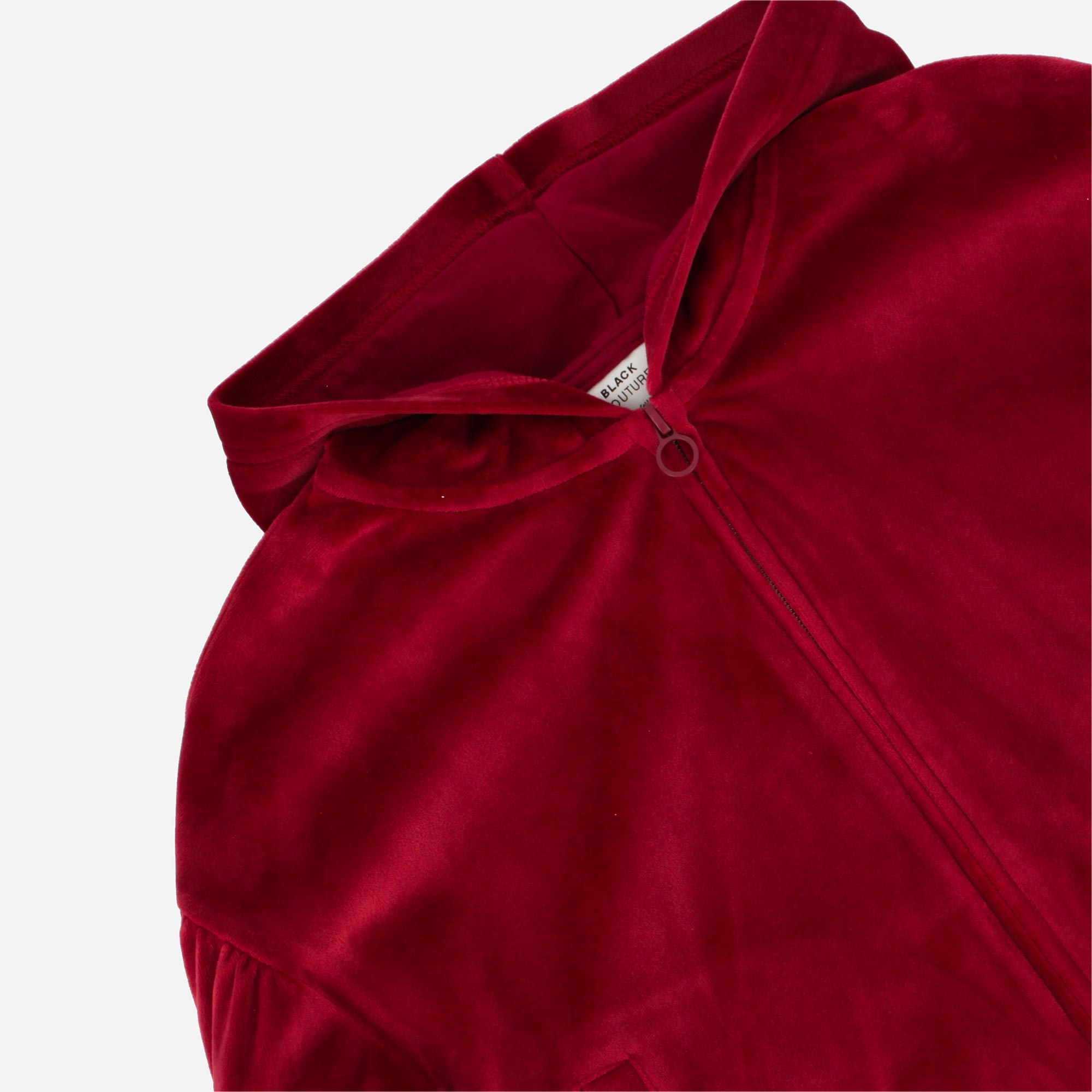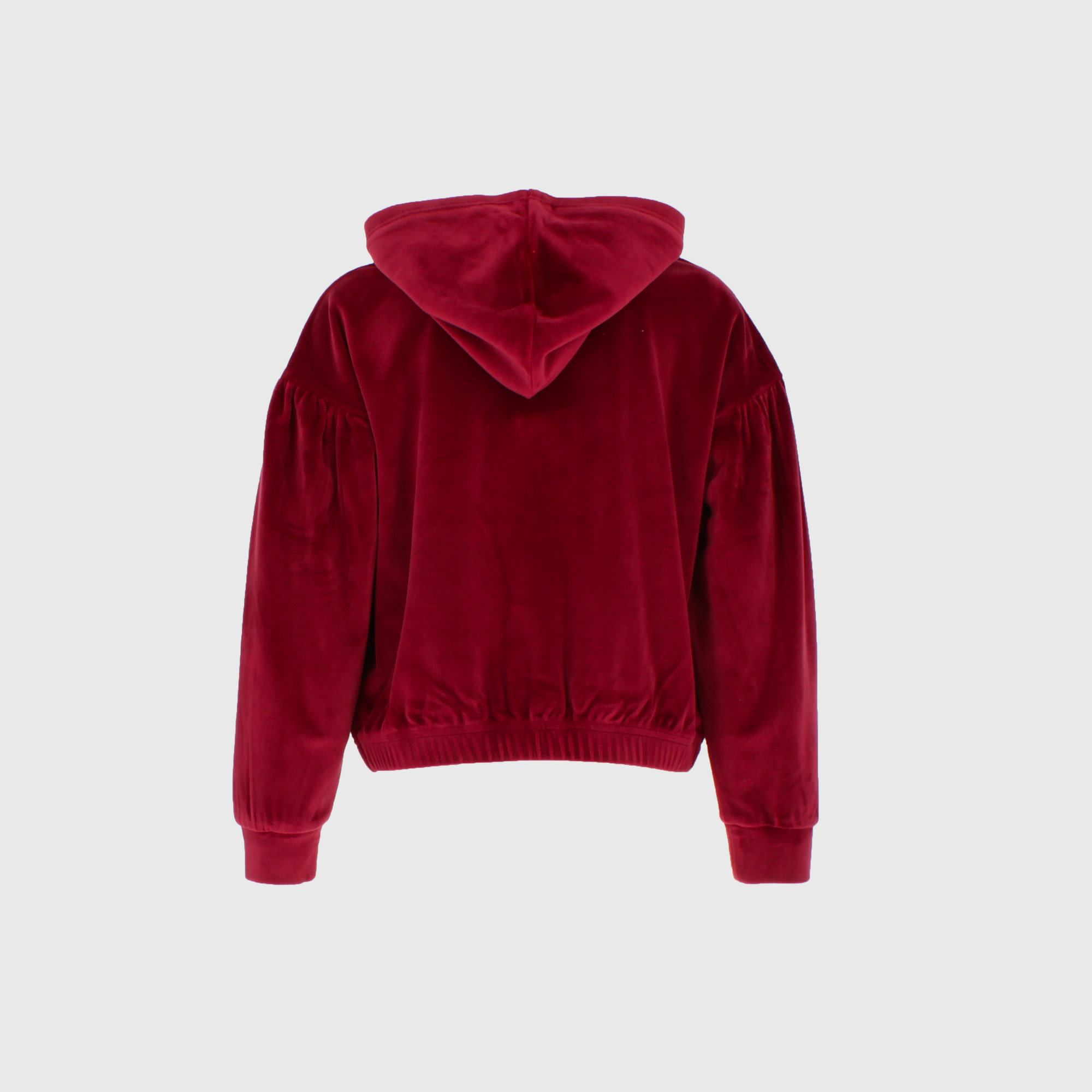 Felpa con cappuccio a maniche lunghe. Chiusura con zip sul davanti. Tasche a filetto. Fondo con elastico.