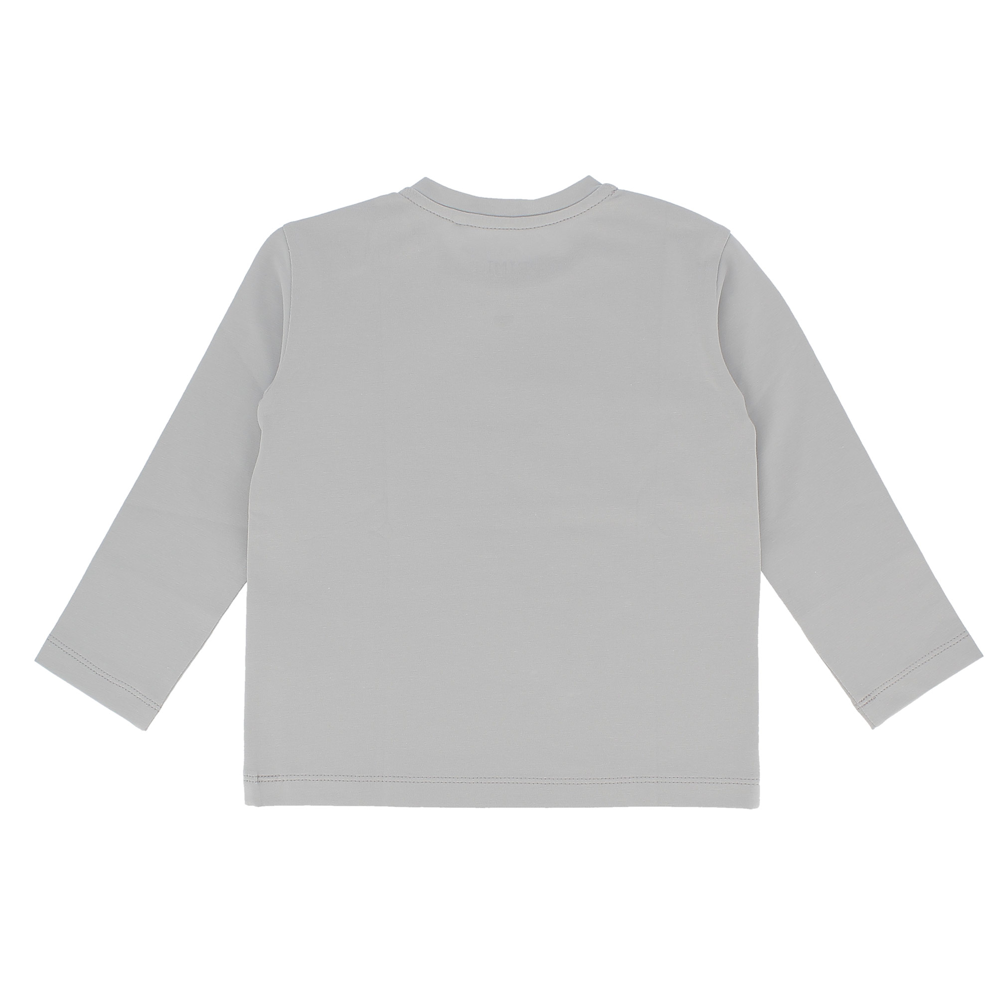 Maglietta in jersey, girocollo, a maniche lunghe. Chiusura con bottoni automatici sulla spalla. Fondo arricciato con elastico. Stampa con dettagli glitter sul davanti.