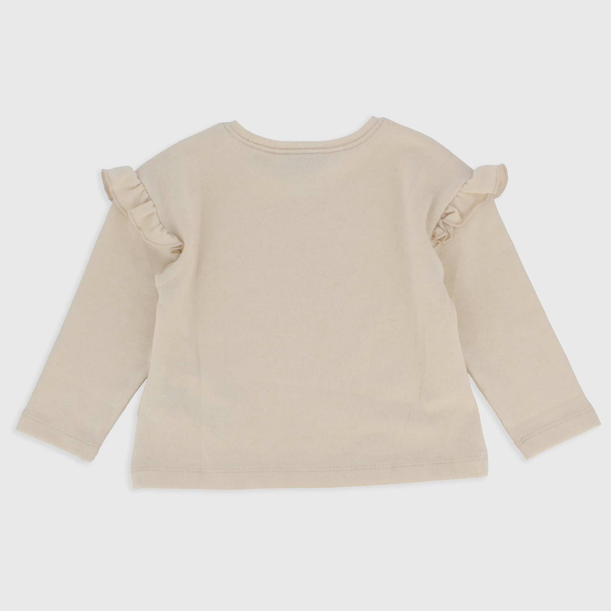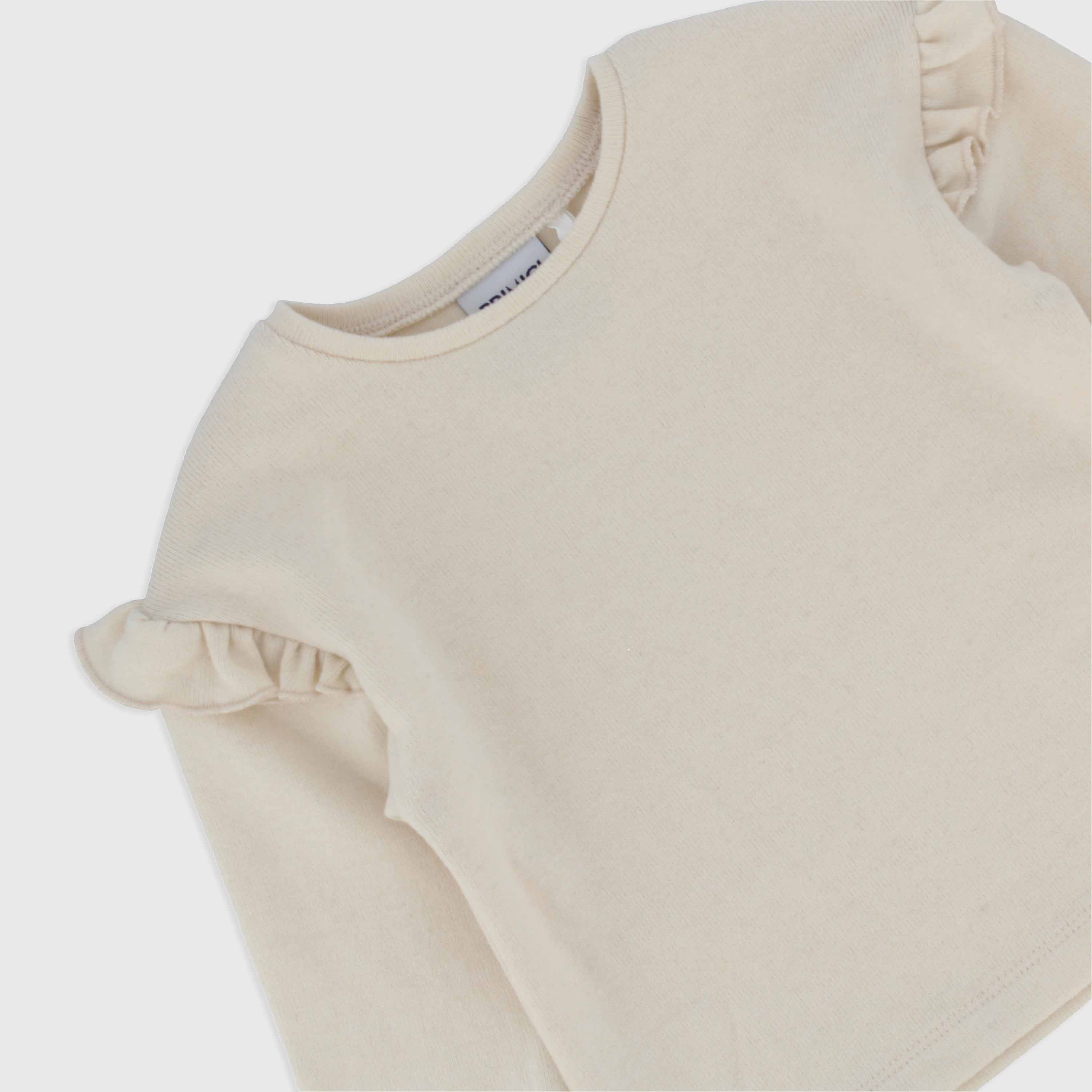Maglietta in tessuto soft touch, girocollo, a maniche lunghe. Volants sul giromanica.