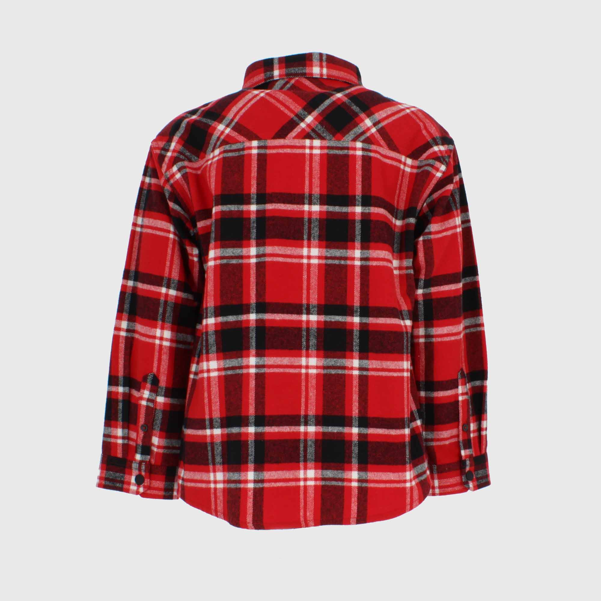 Camicia in madras, a maniche lunghe. Chiusura con bottoni automatici sul davanti. Tasche applicate frontali.