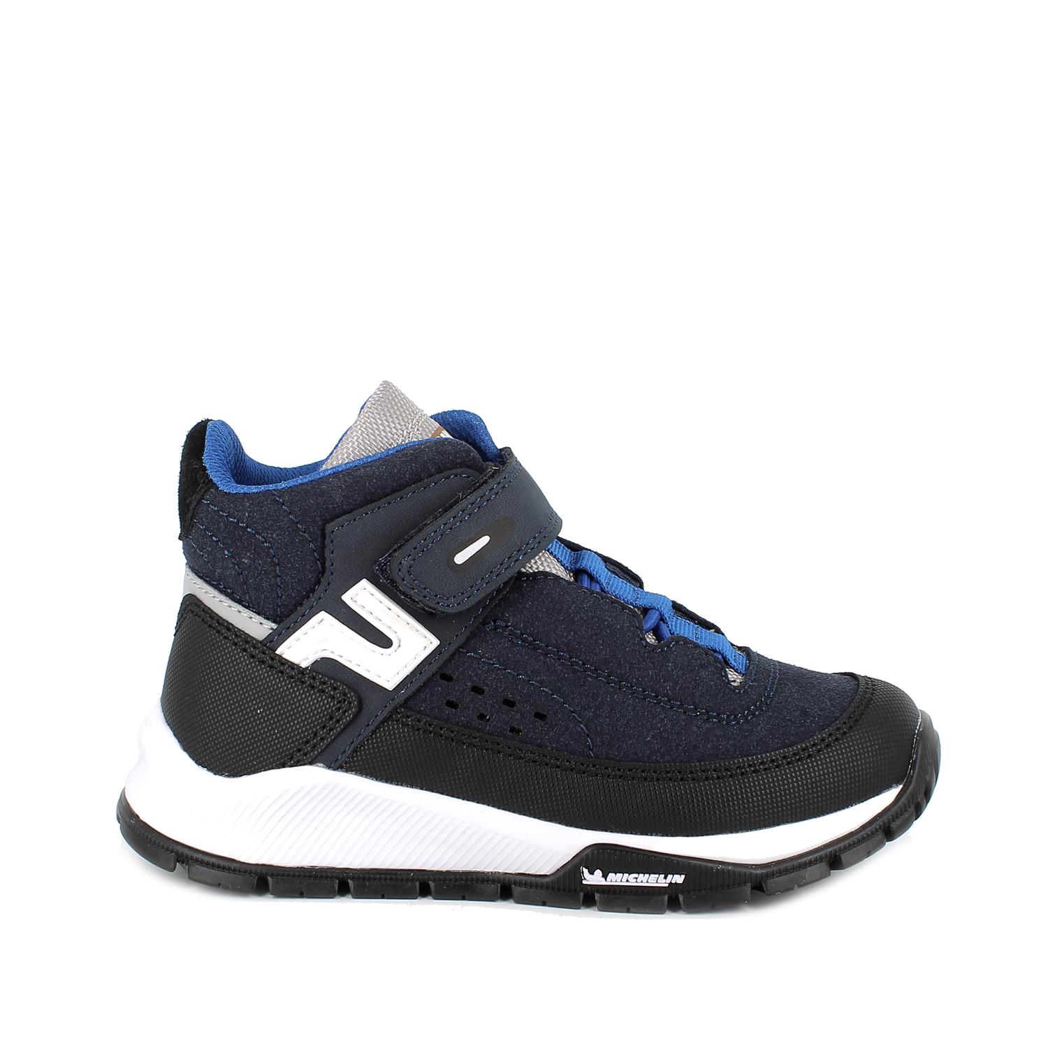 Nel realizzare queste sneakers Primigi ha voluto trasferire il know how del “contatto al suolo” tipico dell'industria automobilistica al mondo delle calzature. Suole Michelin dalle grandi prestazioni sono state utilizzate per creare scarpe sportive altamente affidabili e di qualità. Questo modello di taglio basket ha anche delle protezioni in gomma lungo tutto il perimetro della suola, e un'allacciatura elastica che velocizza la calzata. Il sottopiede anatomico è estraibile e rivestito in pelle per assicurare traspirabilità e igiene.