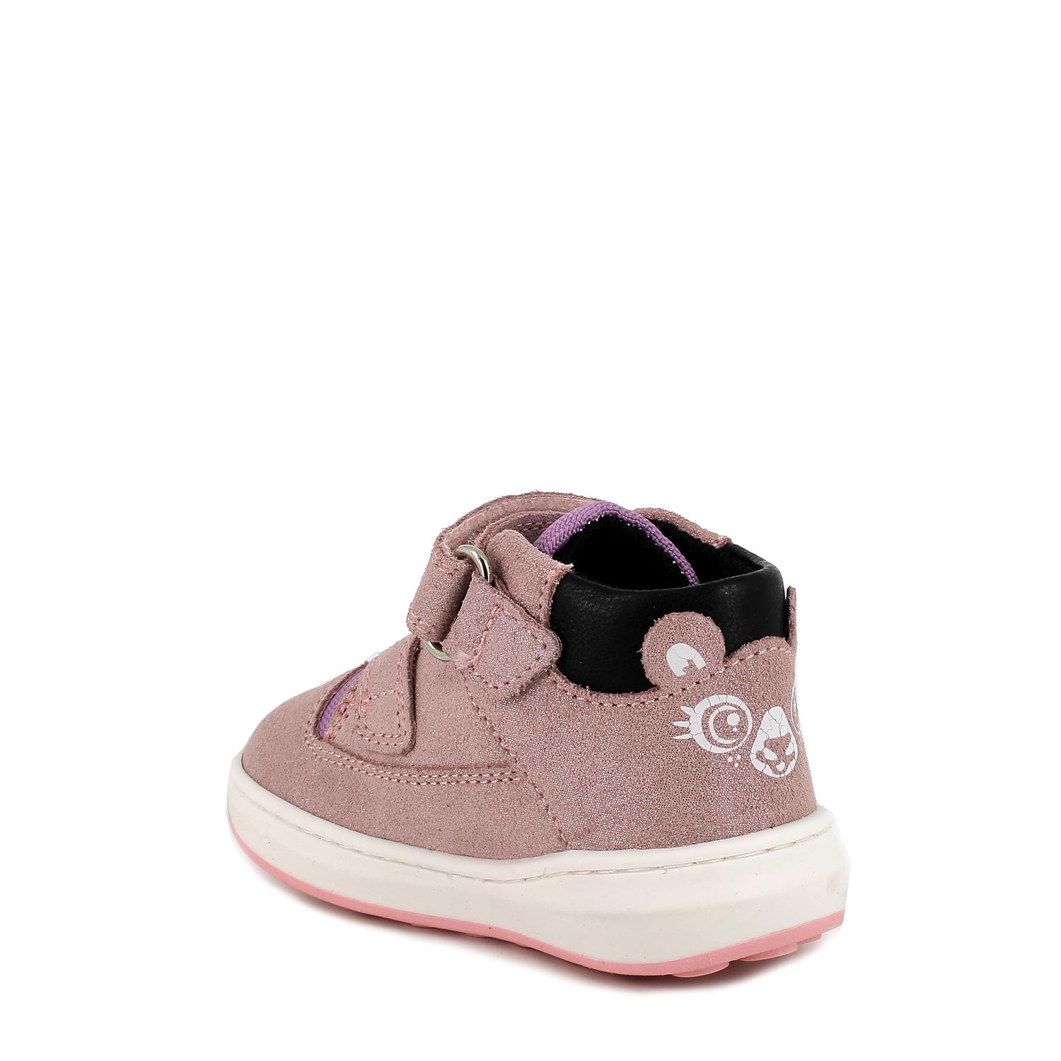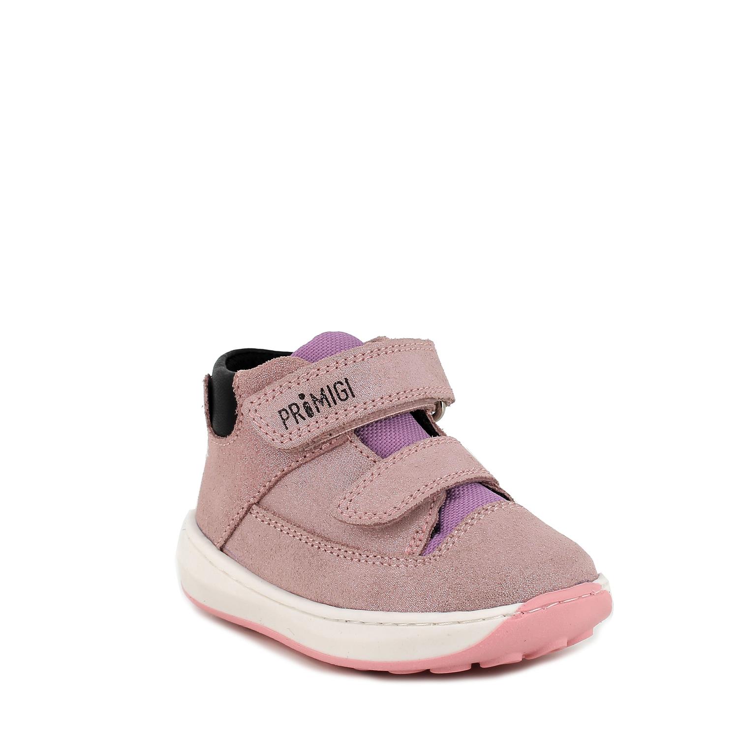 Scarpe primi passi in pelle da bambina rosa glitter