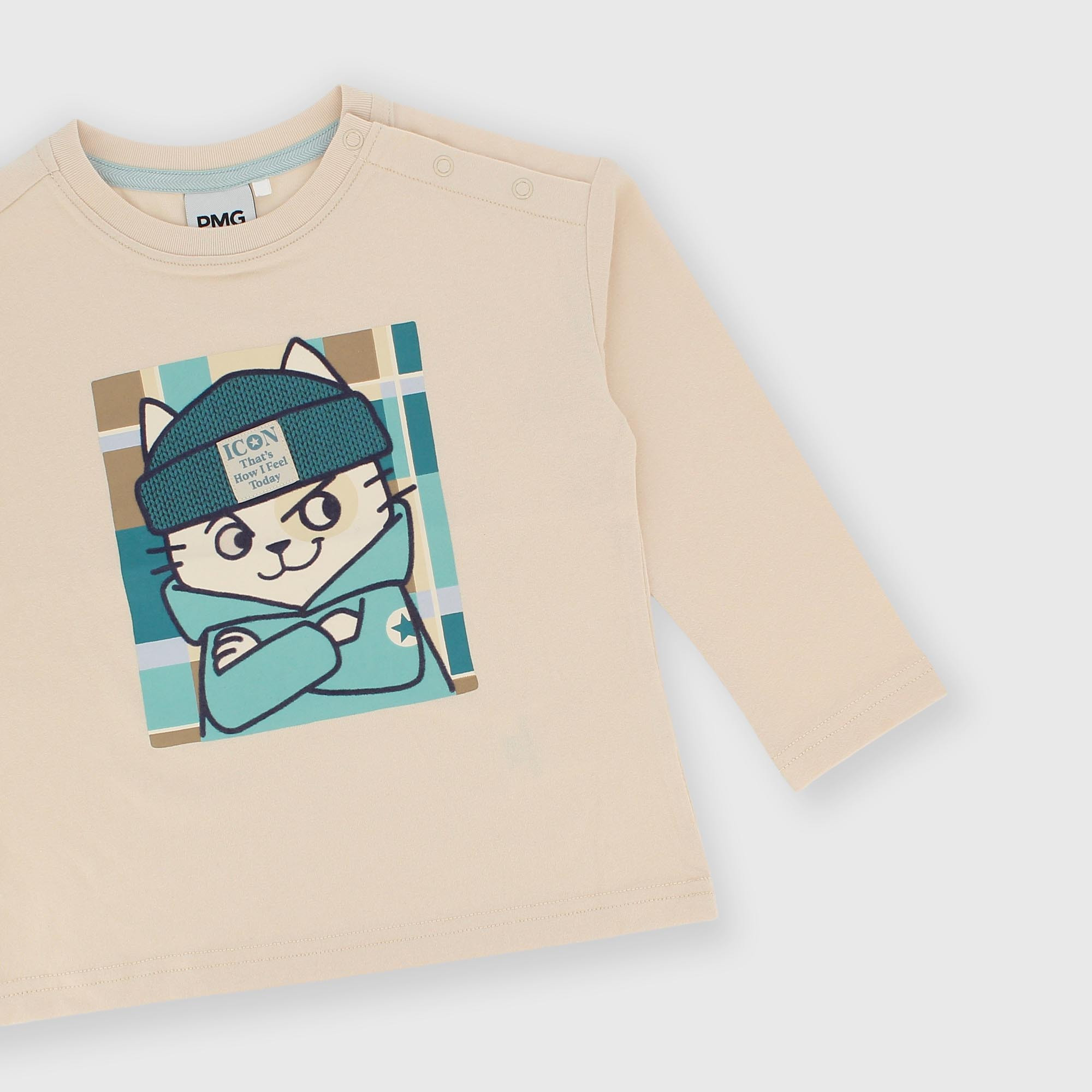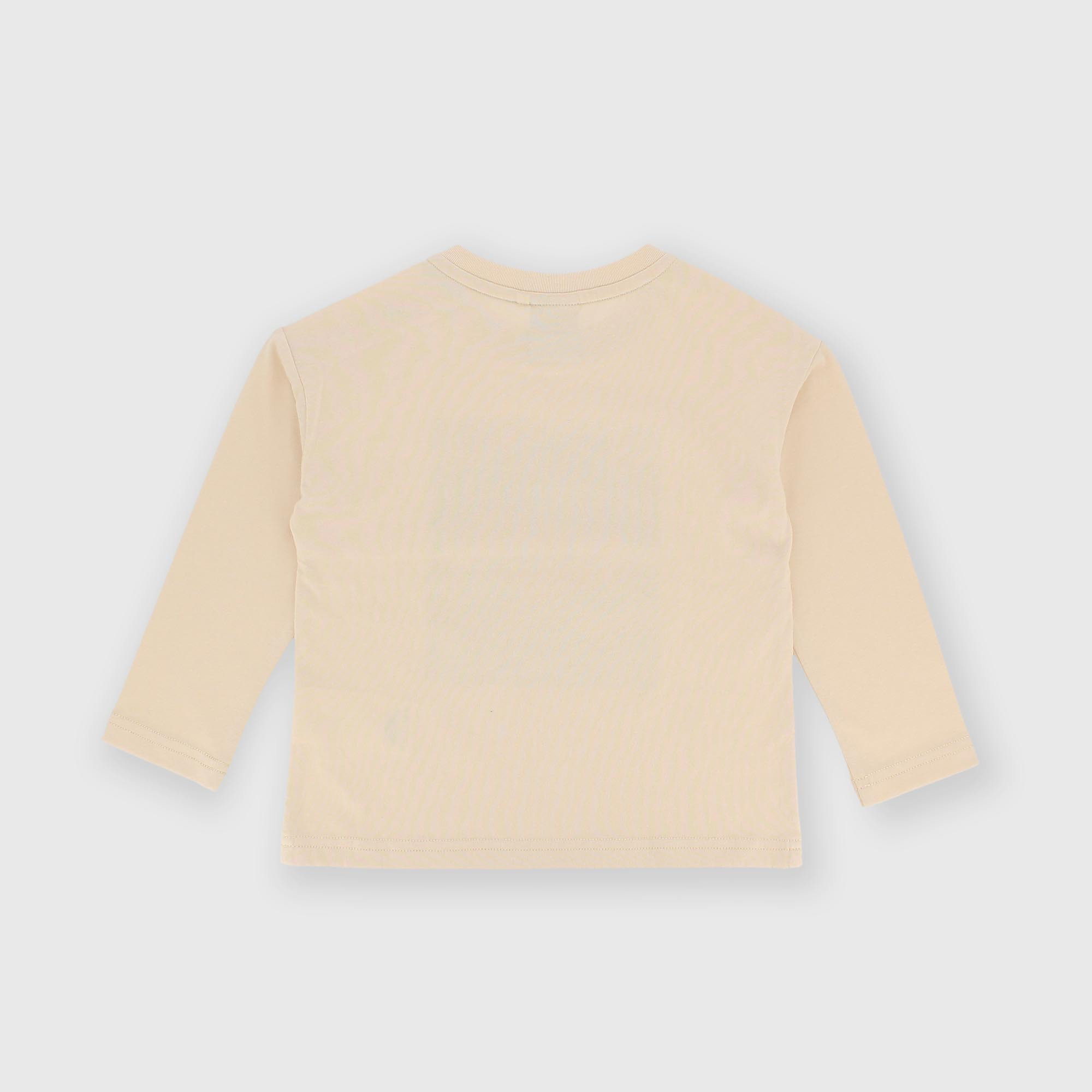 Maglietta in jersey, girocollo, a maniche lunghe. Chiusura con bottoncini automatici sulla spalla. Stampa con dettagli flock ed etichetta applicata sul davanti.