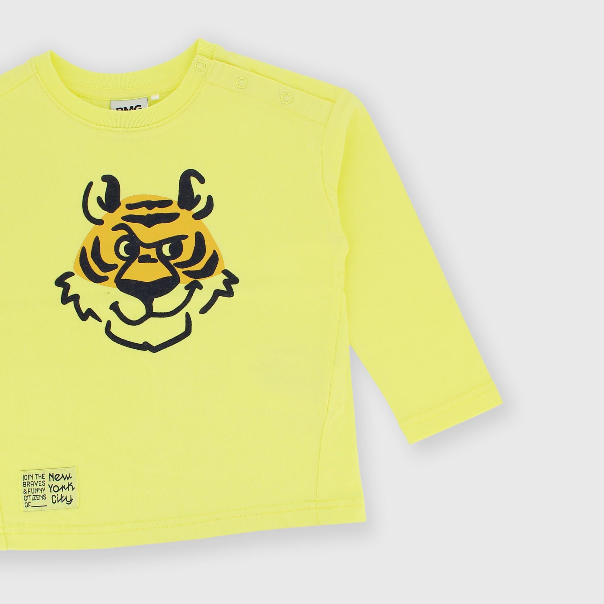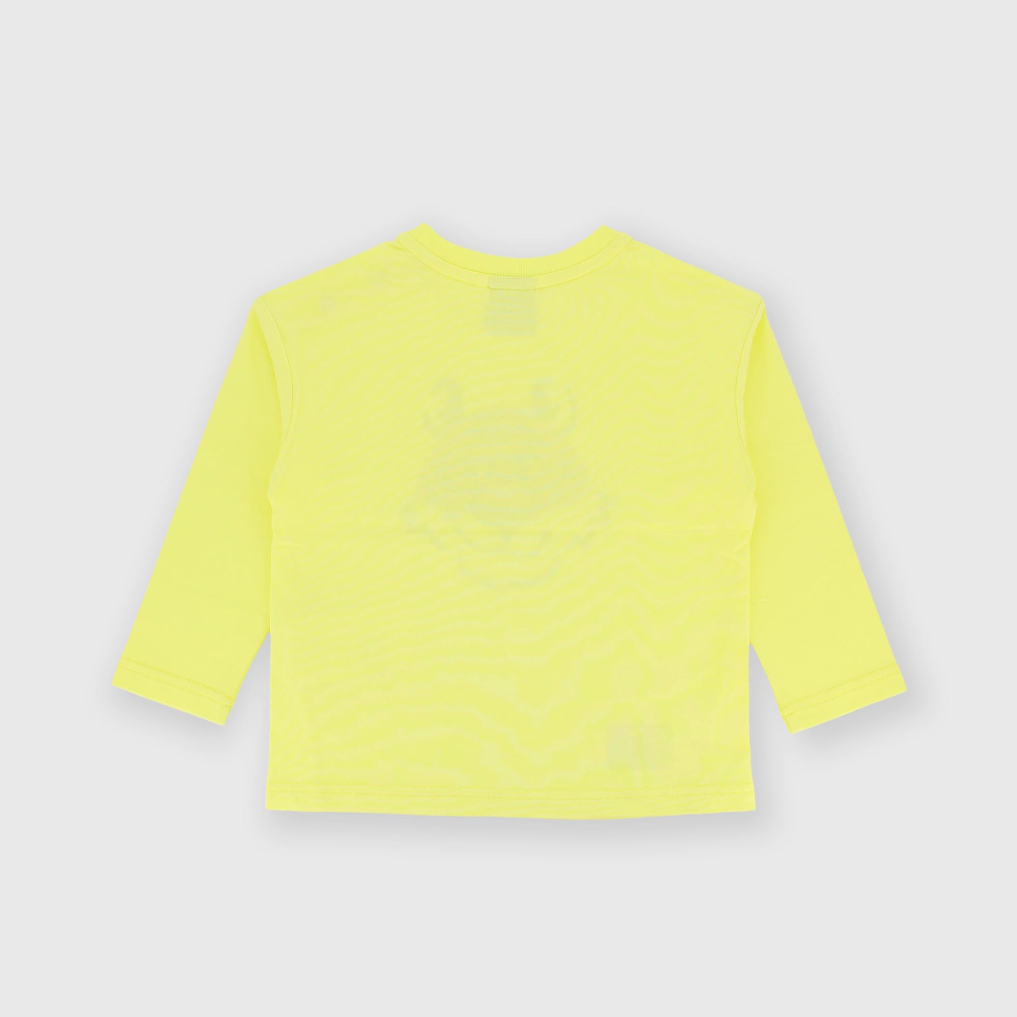 Maglietta in jersey, girocollo, a maniche lunghe. Chiusura con bottoncini automatici sulla spalla. Stampa con dettagli flock ed etichetta applicata sul davanti.