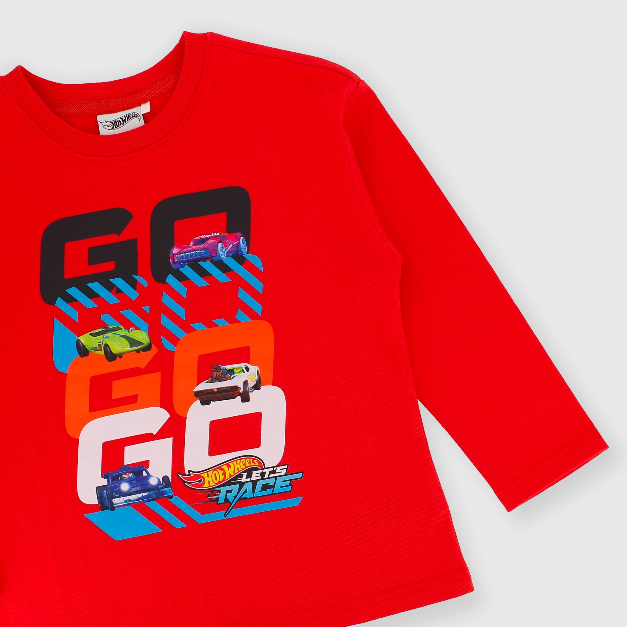 Maglietta Hot Wheels™ Let's Race in jersey, girocollo, a maniche lunghe. Stampa sul davanti. ©2025 Mattel.