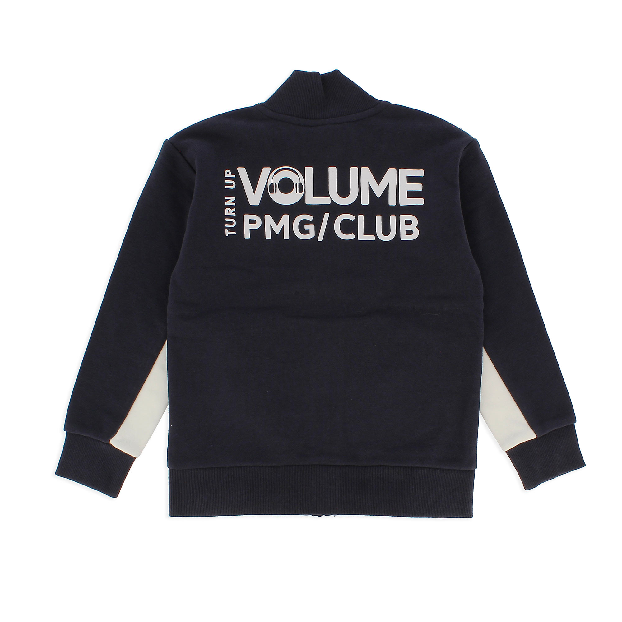Felpa aperta a maniche lunghe. Chiusura con zip sul davanti. Tasche laterali con zip. Stampe con scritte effetto gommato sul retro.