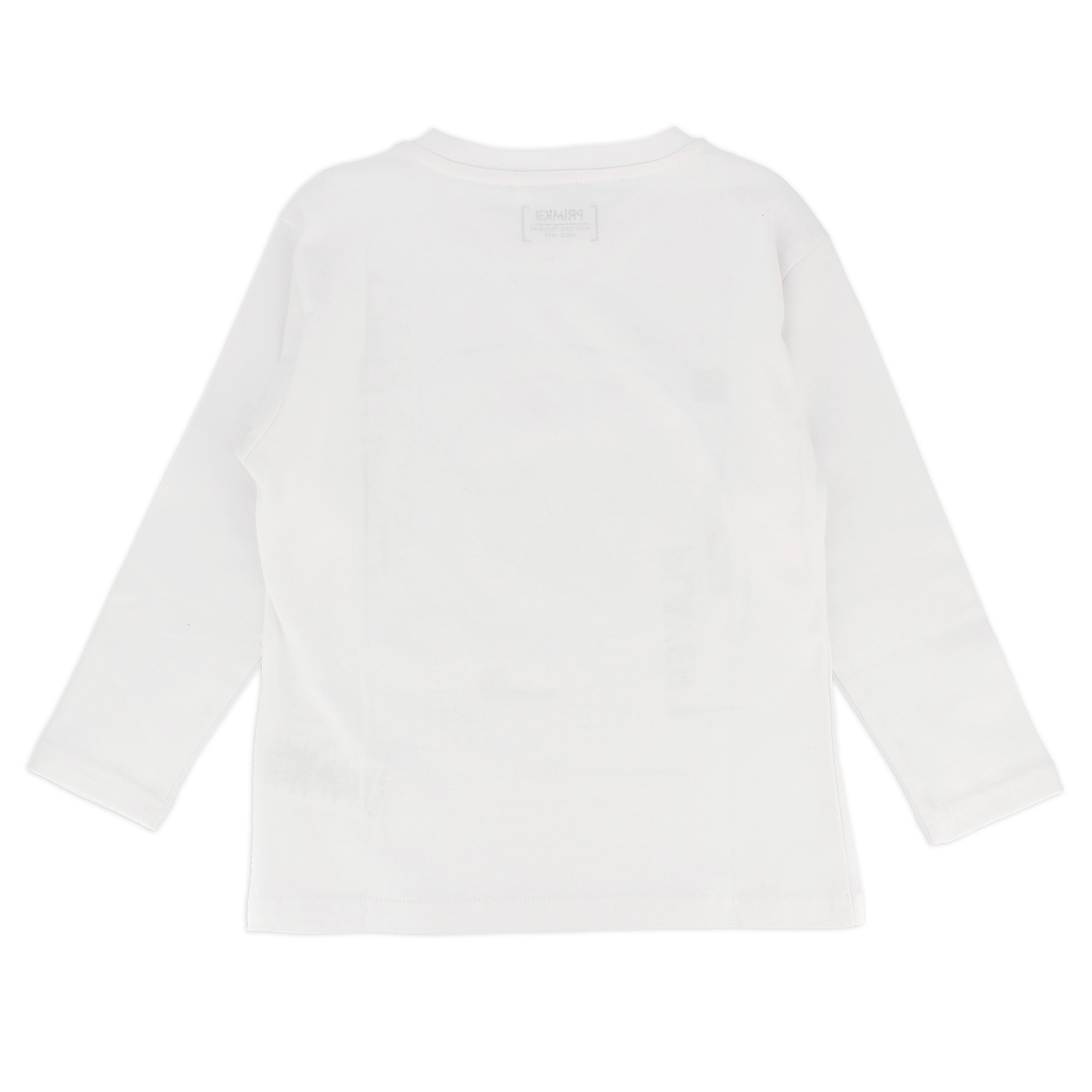 Maglietta oversize in caldo cotone, girocollo, a maniche lunghe. Stampa sul davanti.