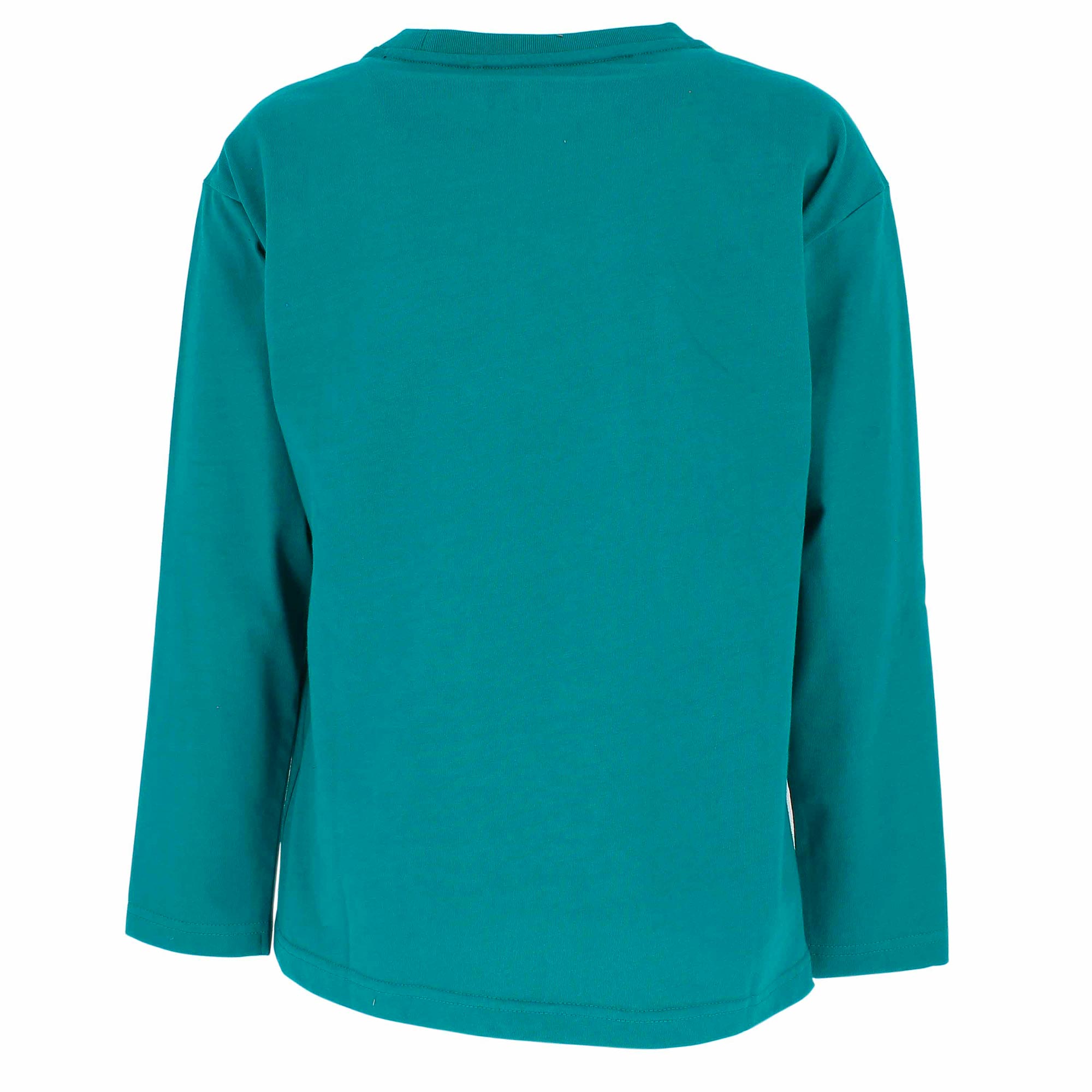 Maglietta oversize in jersey, girocollo, a maniche lunghe. Taschino in nylon con bottoni automatici e stampa con immagine skate sul fondo.
