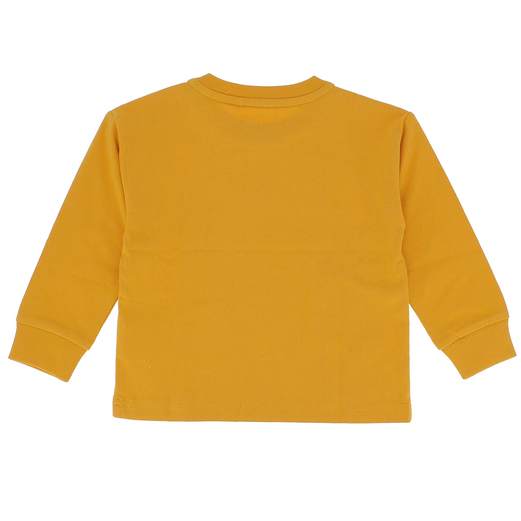 Maglietta oversize in jersey, girocollo, a maniche lunghe. Chiusura con bottoni automatici sulla spalla. Stampe sul davanti e polsini in costina.