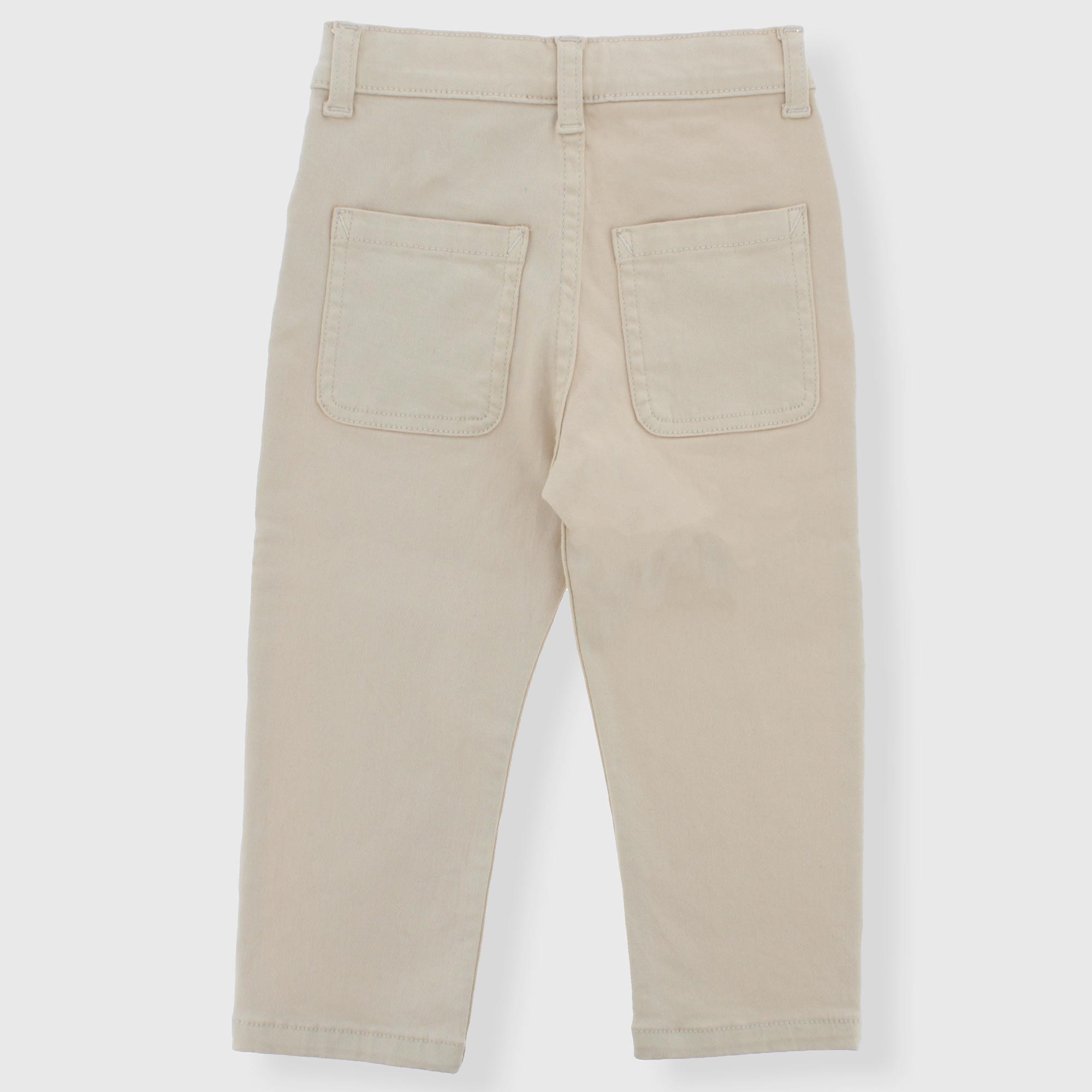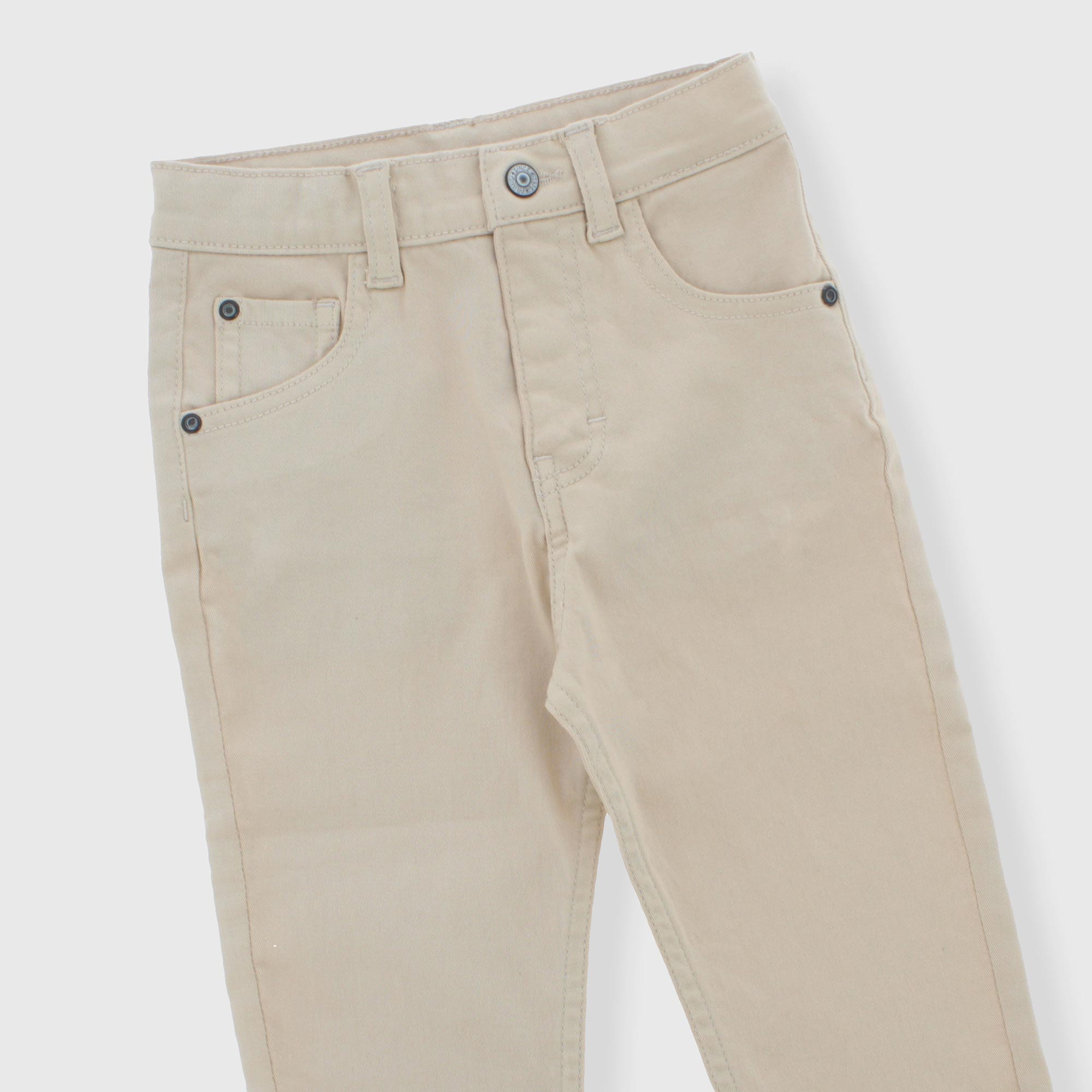 Pantalone in gabardina elasticizzata, con vita elasticizzata. Chiusura con bottone. Cinque tasche.
