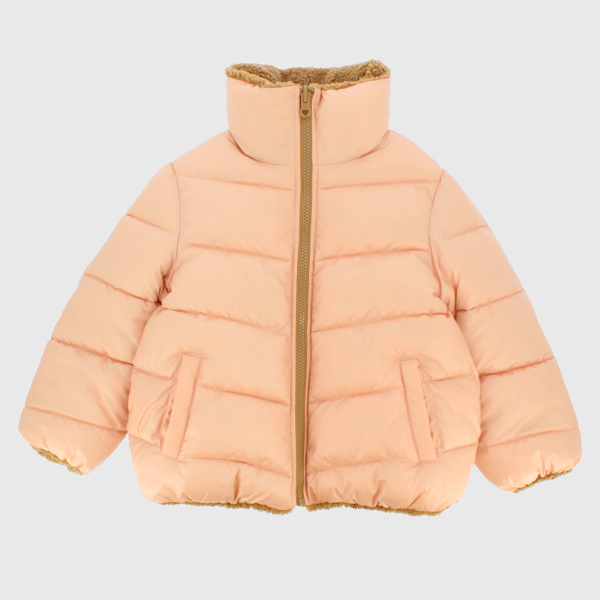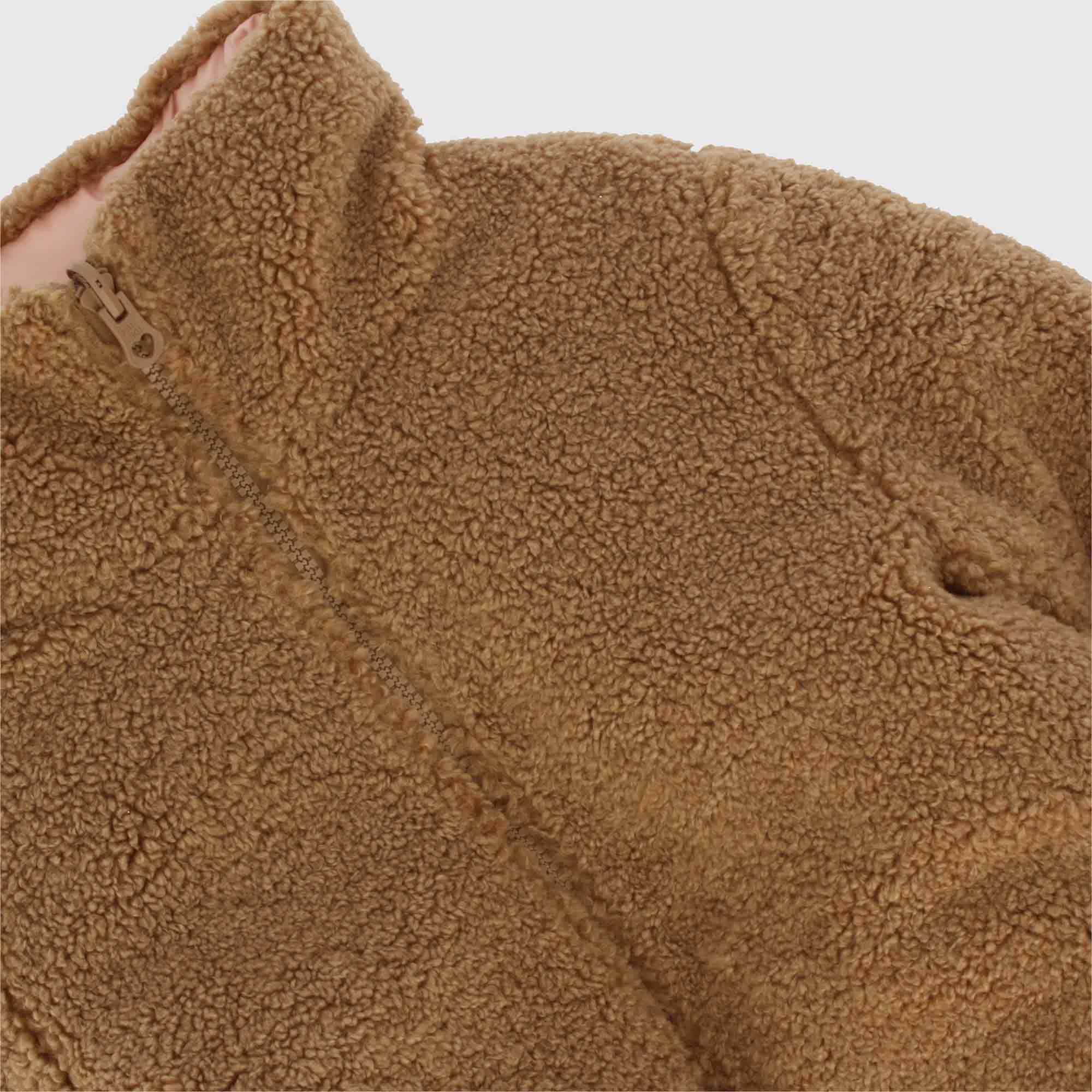 Giubbino reversibile, a maniche lunghe. Un lato in nylon , un lato in pelliccetta ecologica. Chiusura con zip sul davanti.