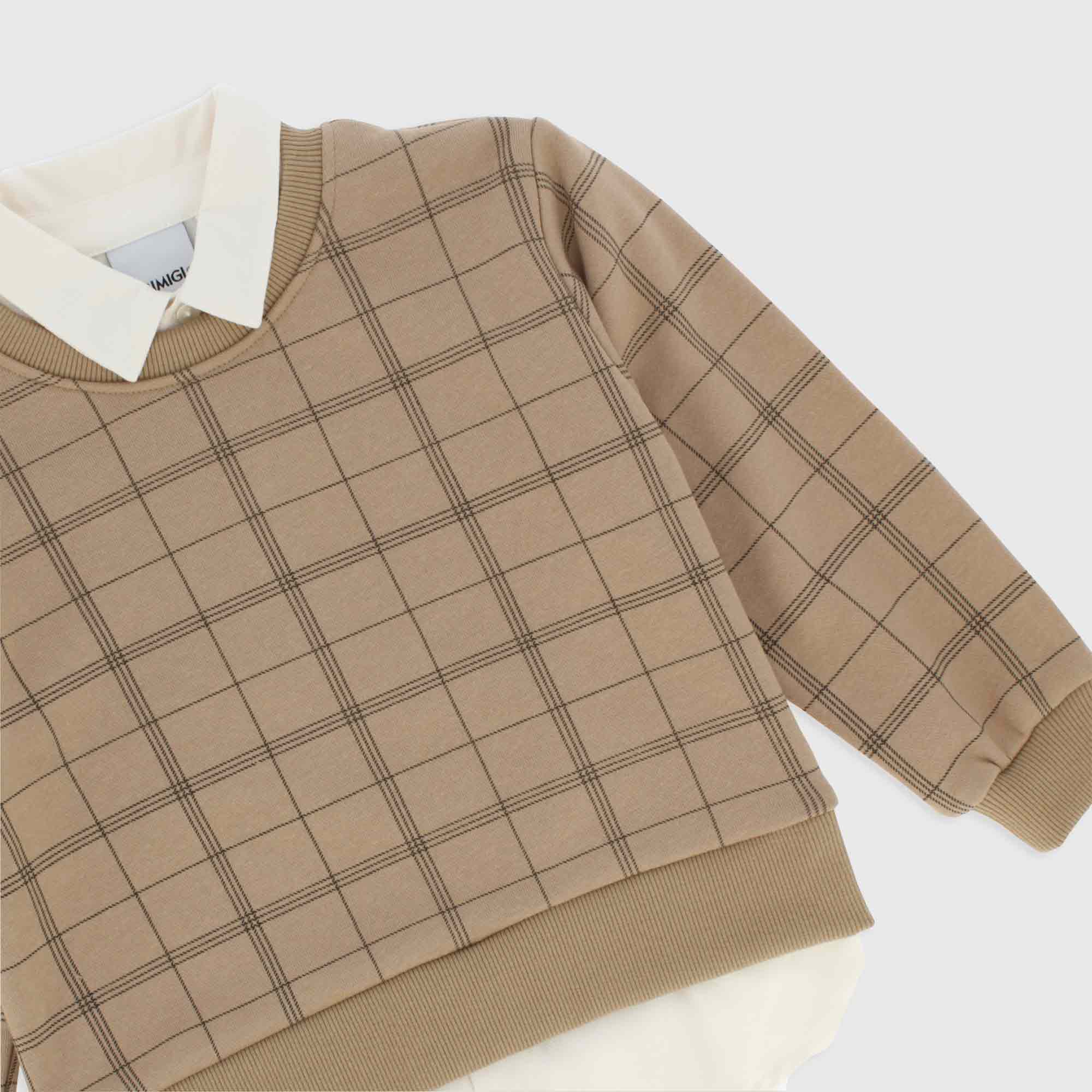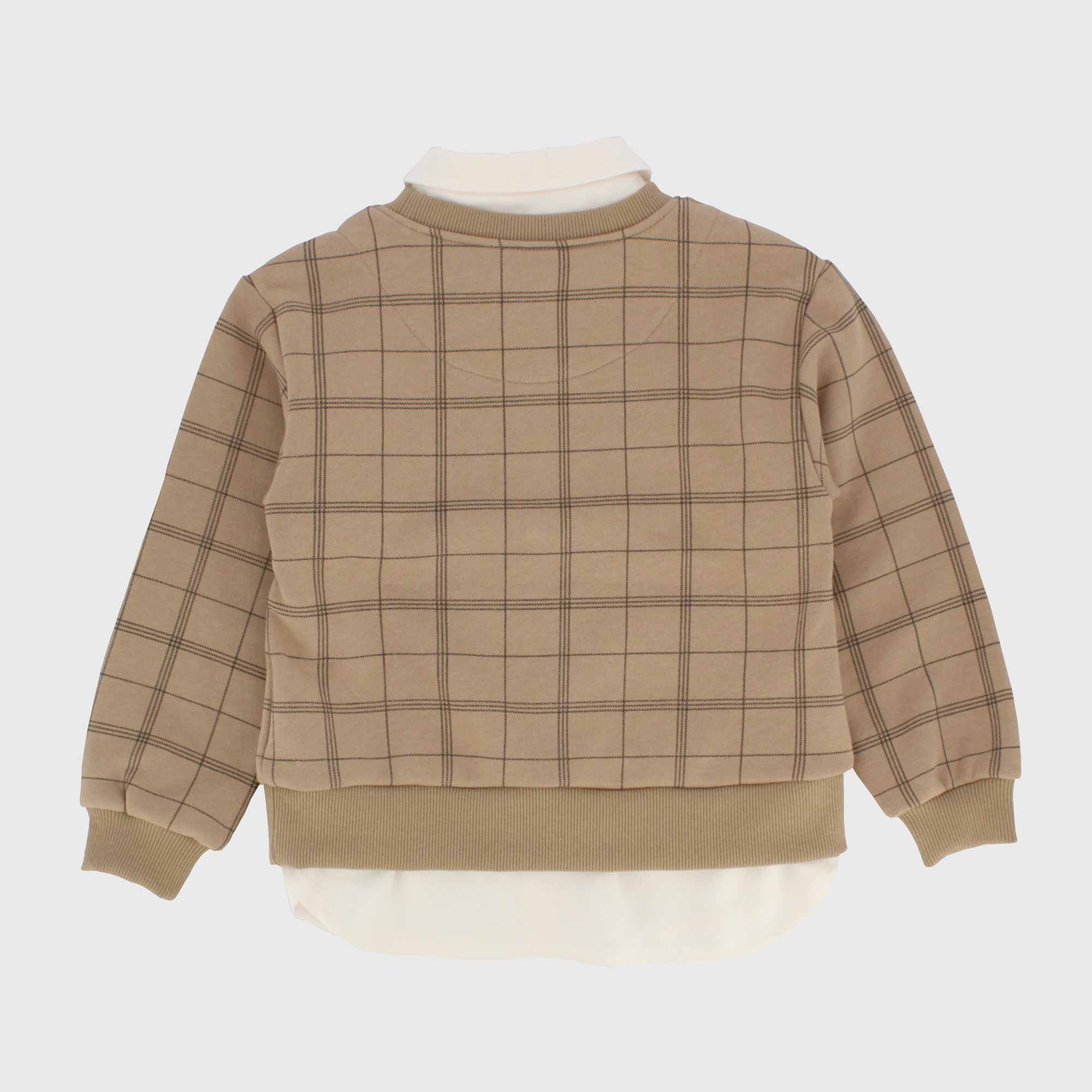 Felpa girocollo a maniche lunghe. Finta camicia applicata sotto. Stampa all-over. Polsini e fondo in costina.