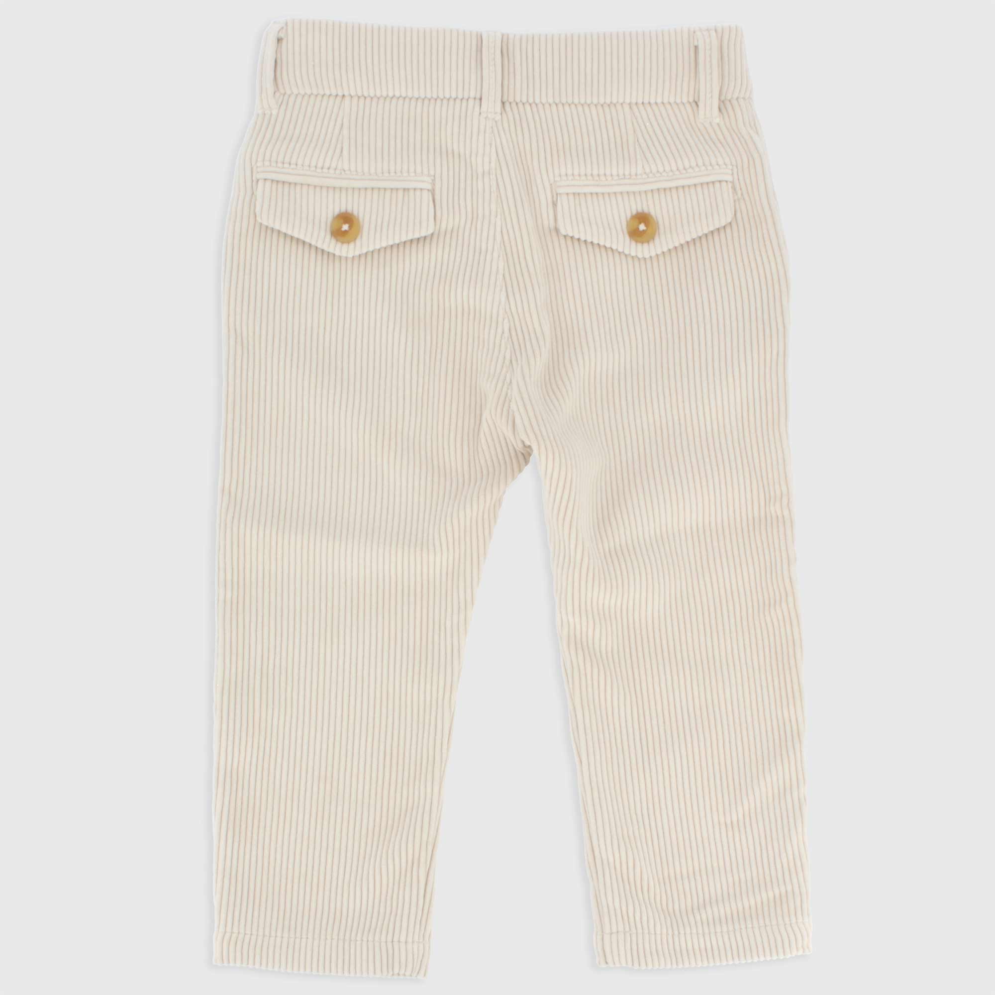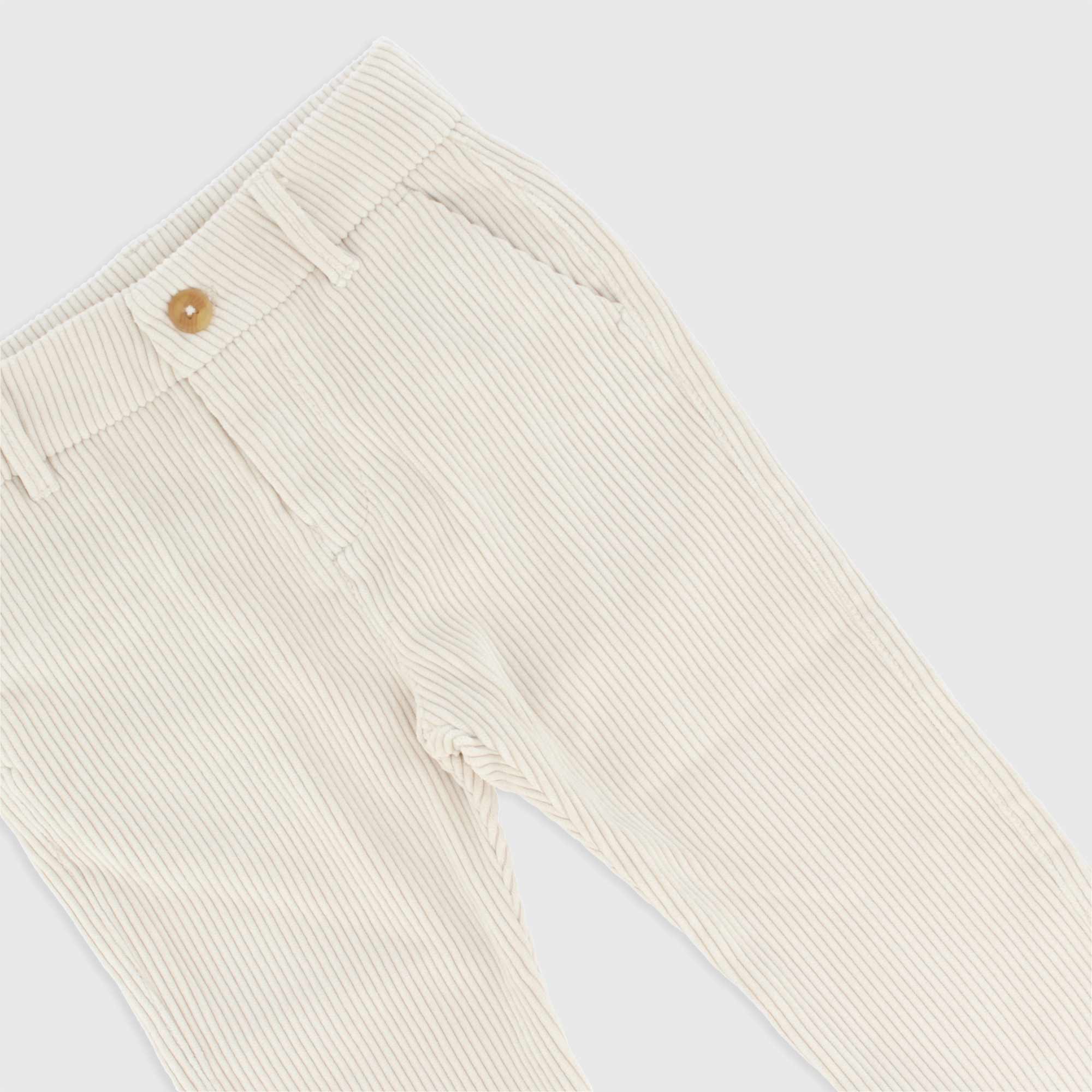 Pantalone in velluto a coste, con vita regolabile all'interno. Chiusura con bottone e zip. Passanti in vita. Tasche alla francese davanti e finte sul retro.