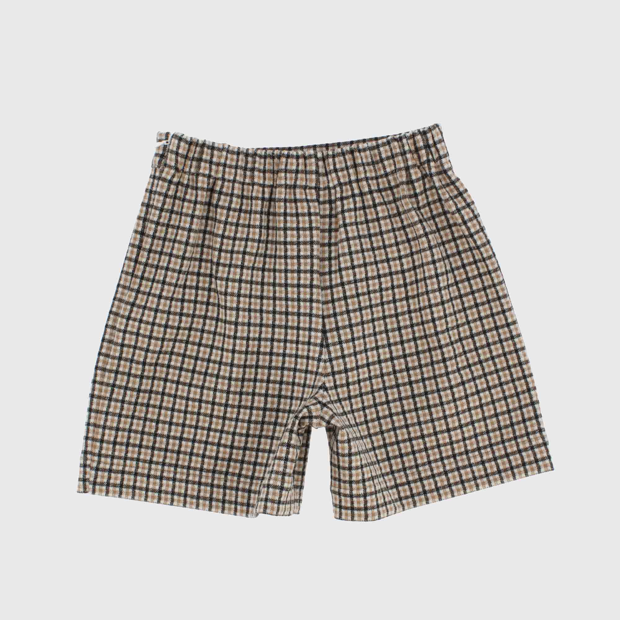 Shorts in tessuto a quadretti. Chiusura con zip sul fianco.