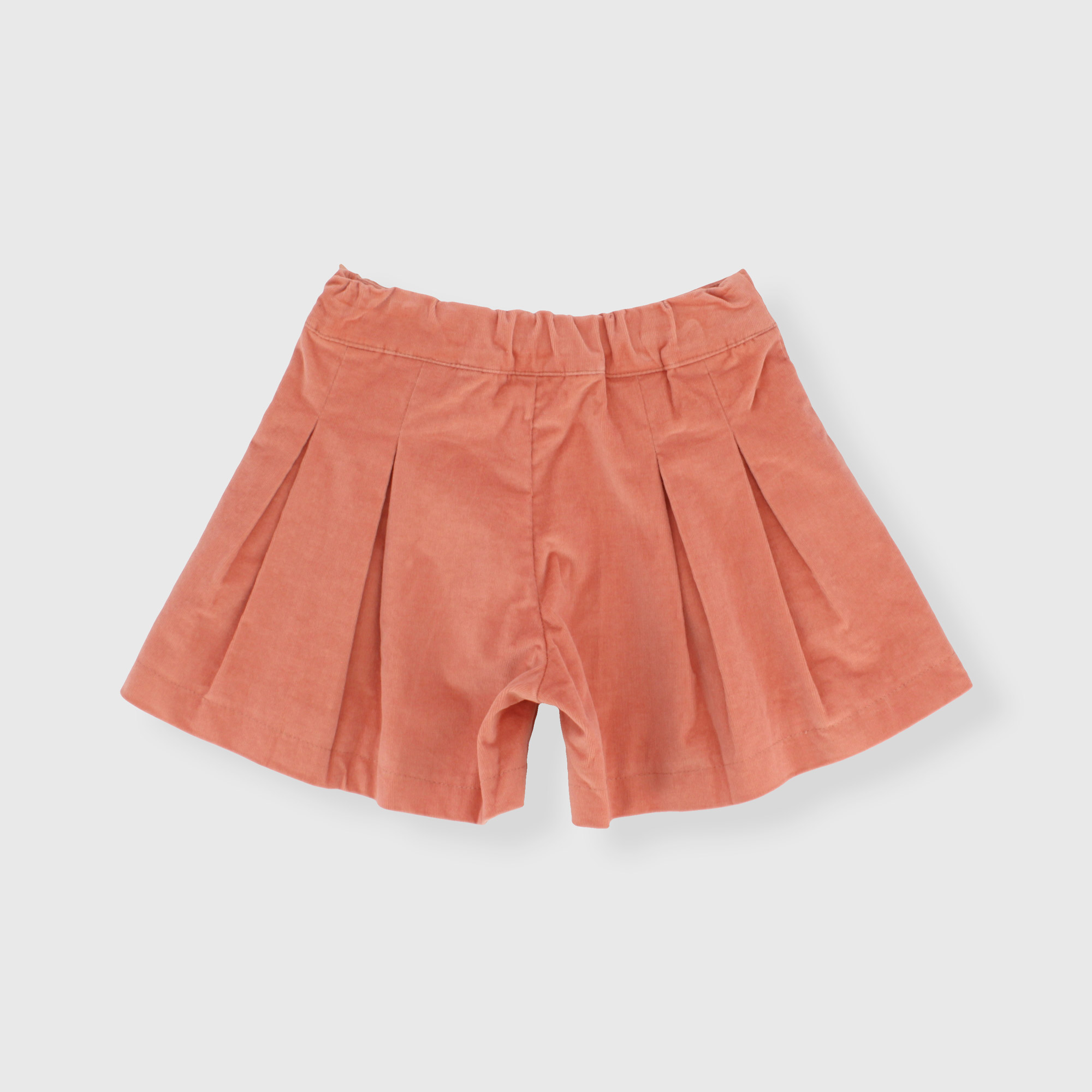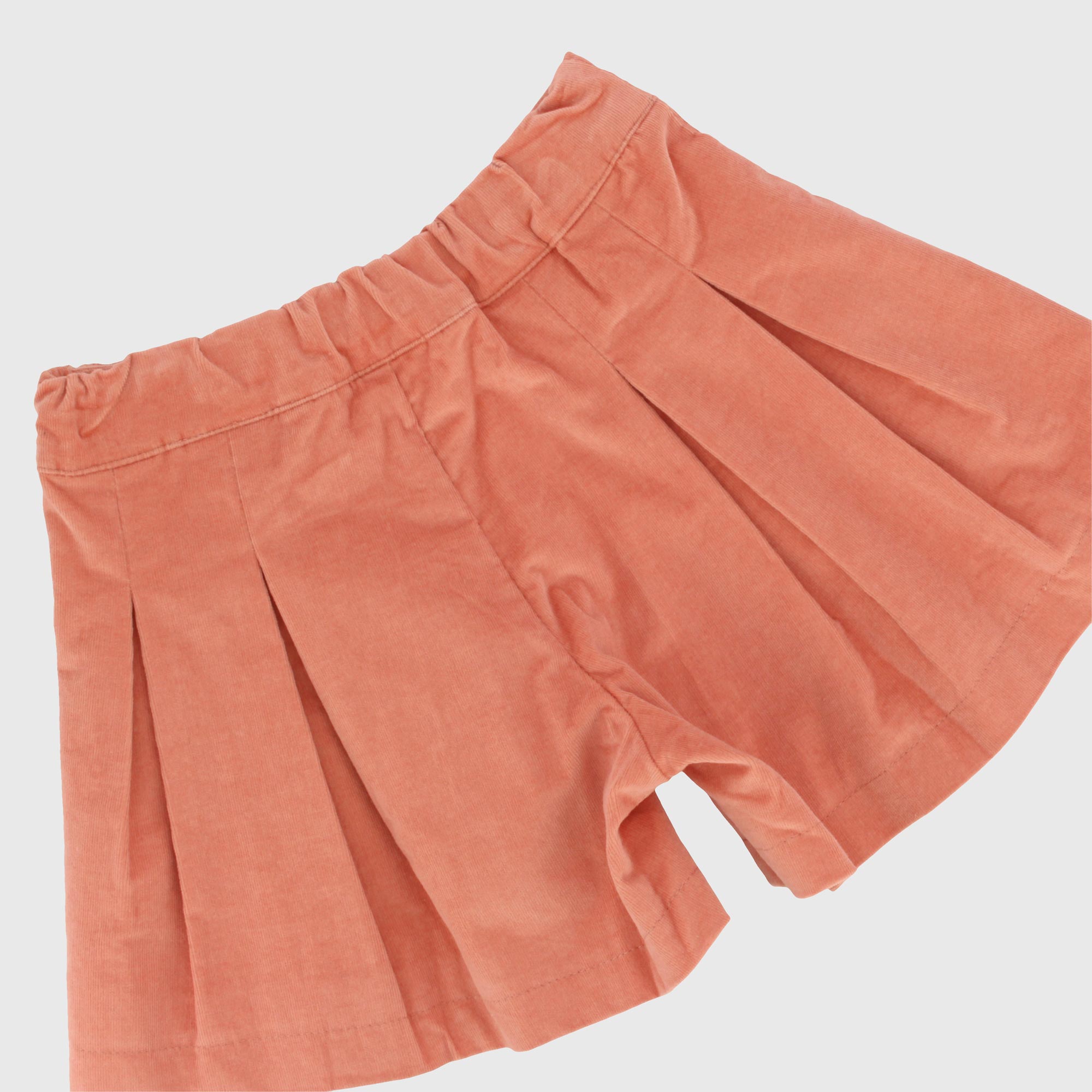 Shorts in velluto a costine. Chiusura con zip sul fianco. Pieghe sul davanti e sul retro. Fodera interna.