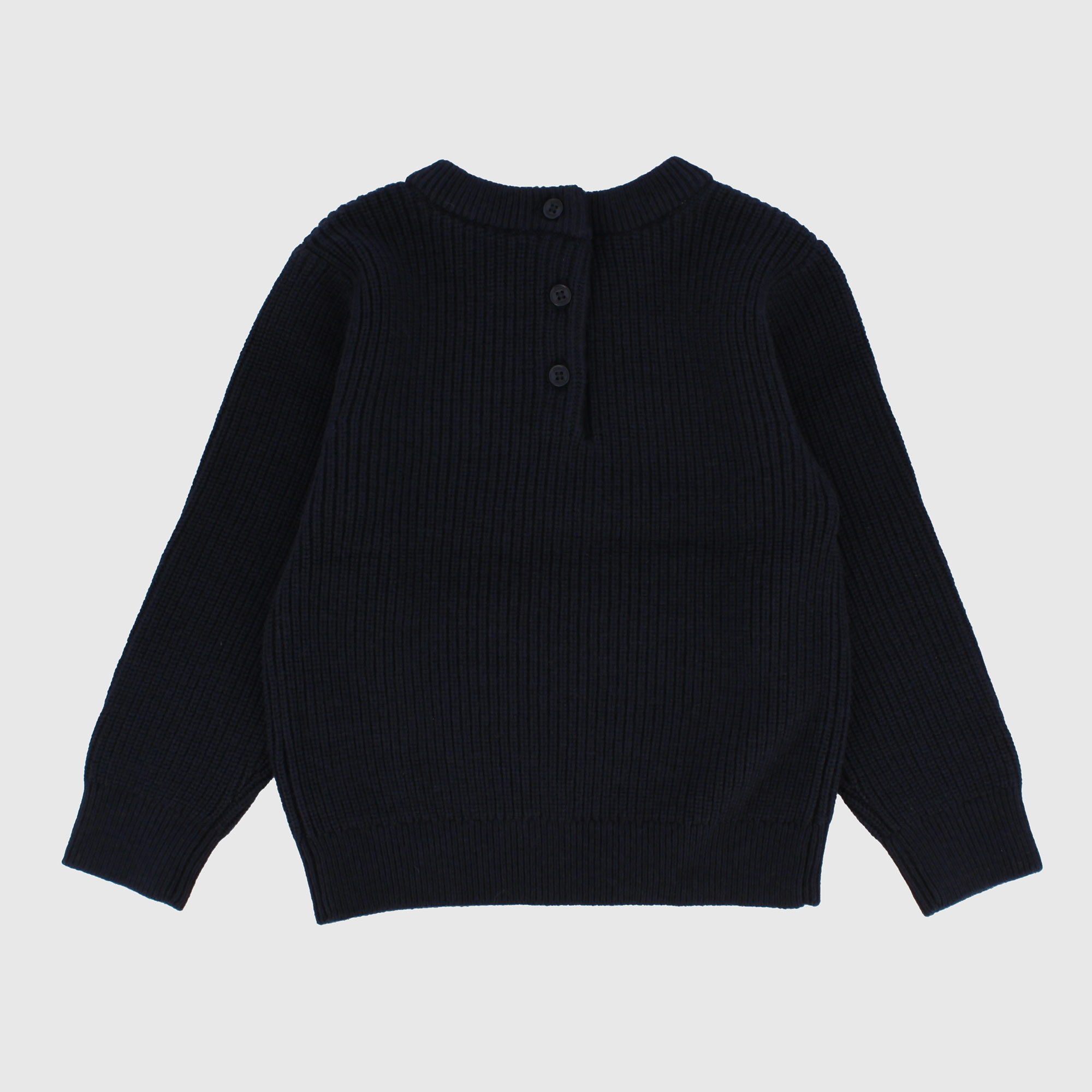 Pullover in maglia girocollo a coste, a maniche lunghe. Chiusura con bottoncini sul retro.