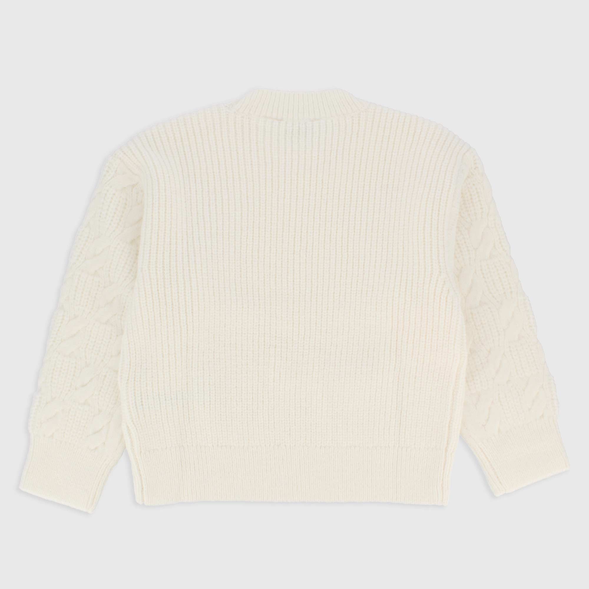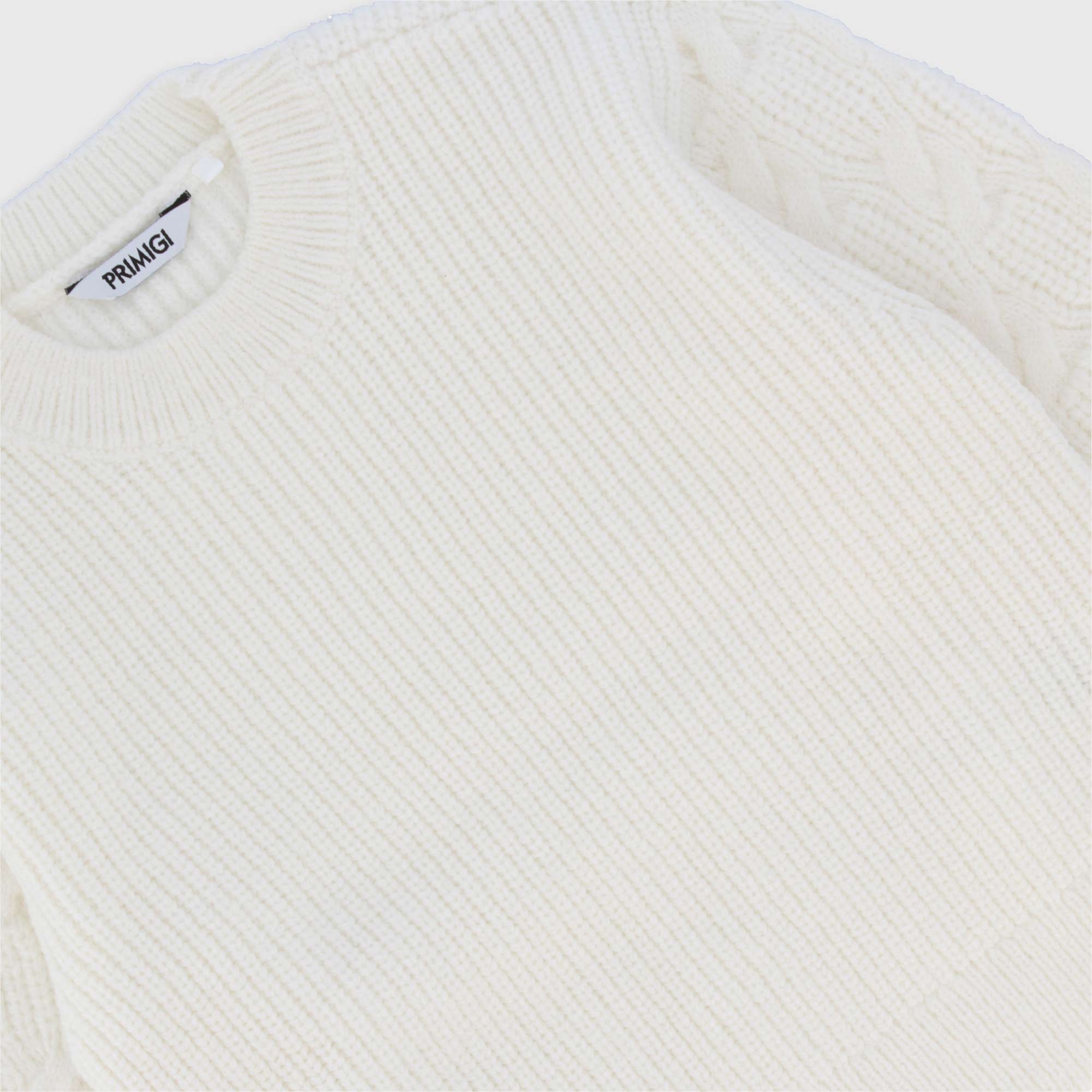 Pullover in maglia mezzo collo. Maniche lunghe con lavorazione a trecce.