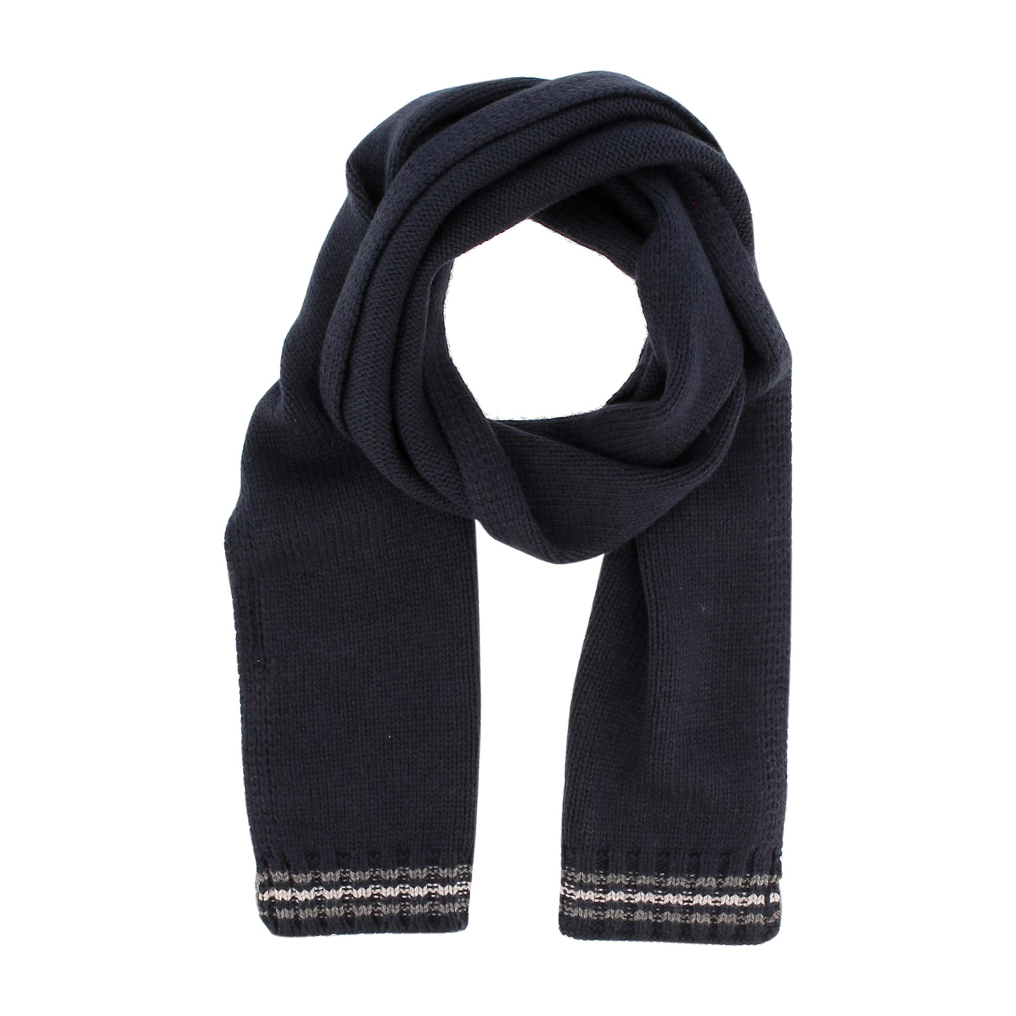 Sciarpa in morbida maglia con motivo a righe sul fondo.