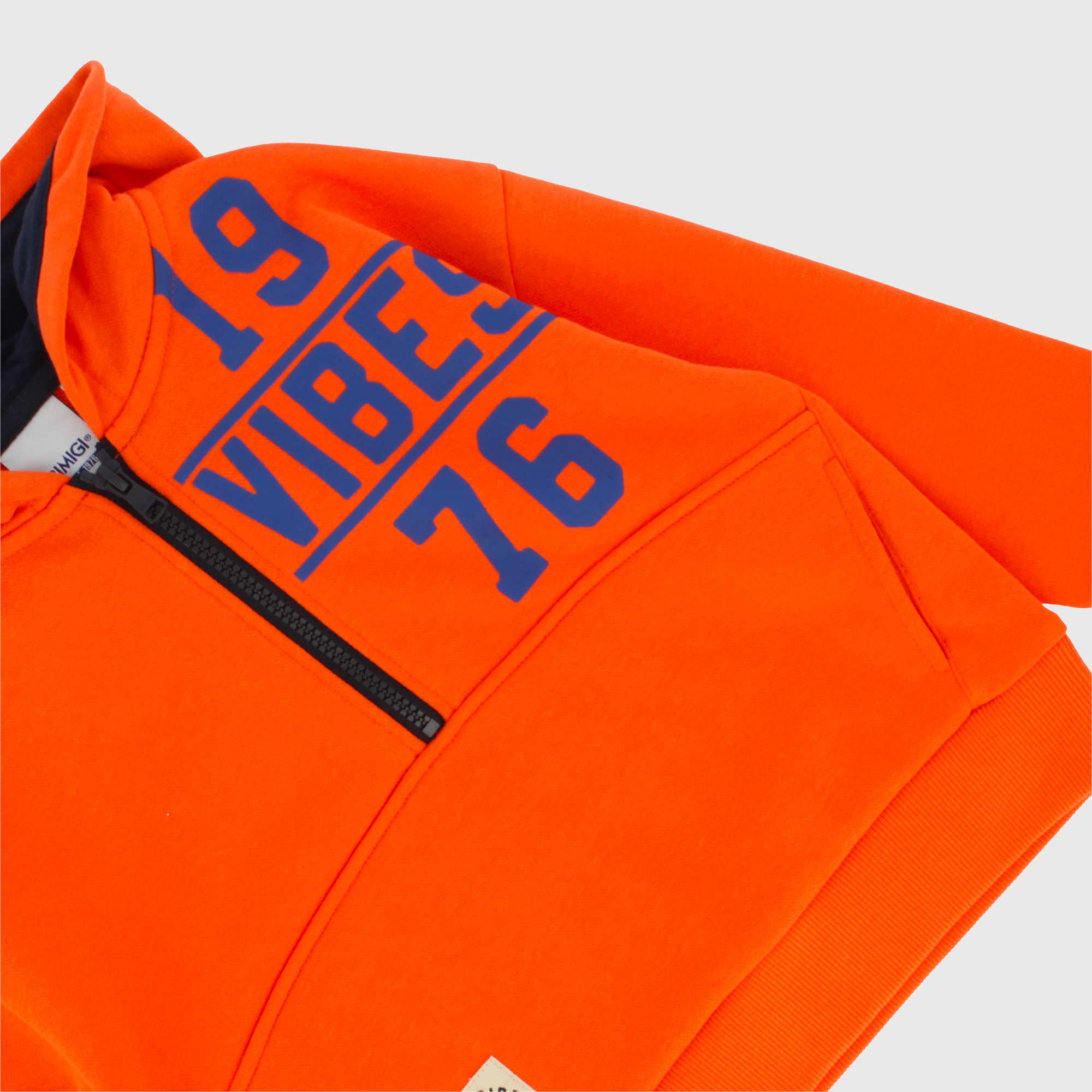 Felpa mezza zip con cappuccio, a maniche lunghe. Tasca a marsupio, stampa e patch sul davanti. Polsini e fondo in costina.