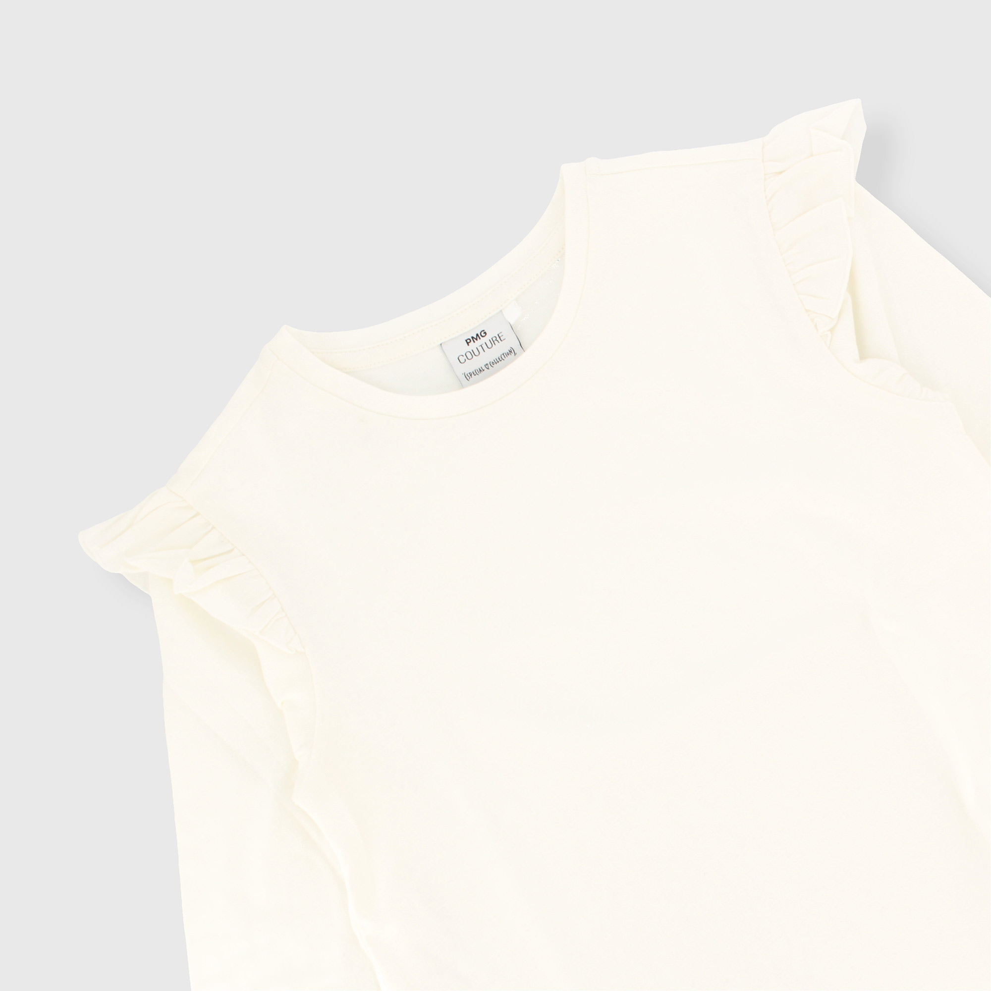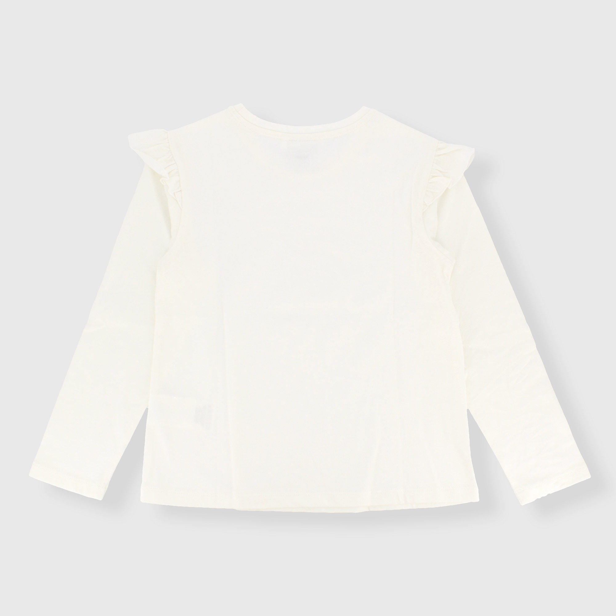 Maglietta in jersey, girocollo, a maniche lunghe. Volants sulle spalle.