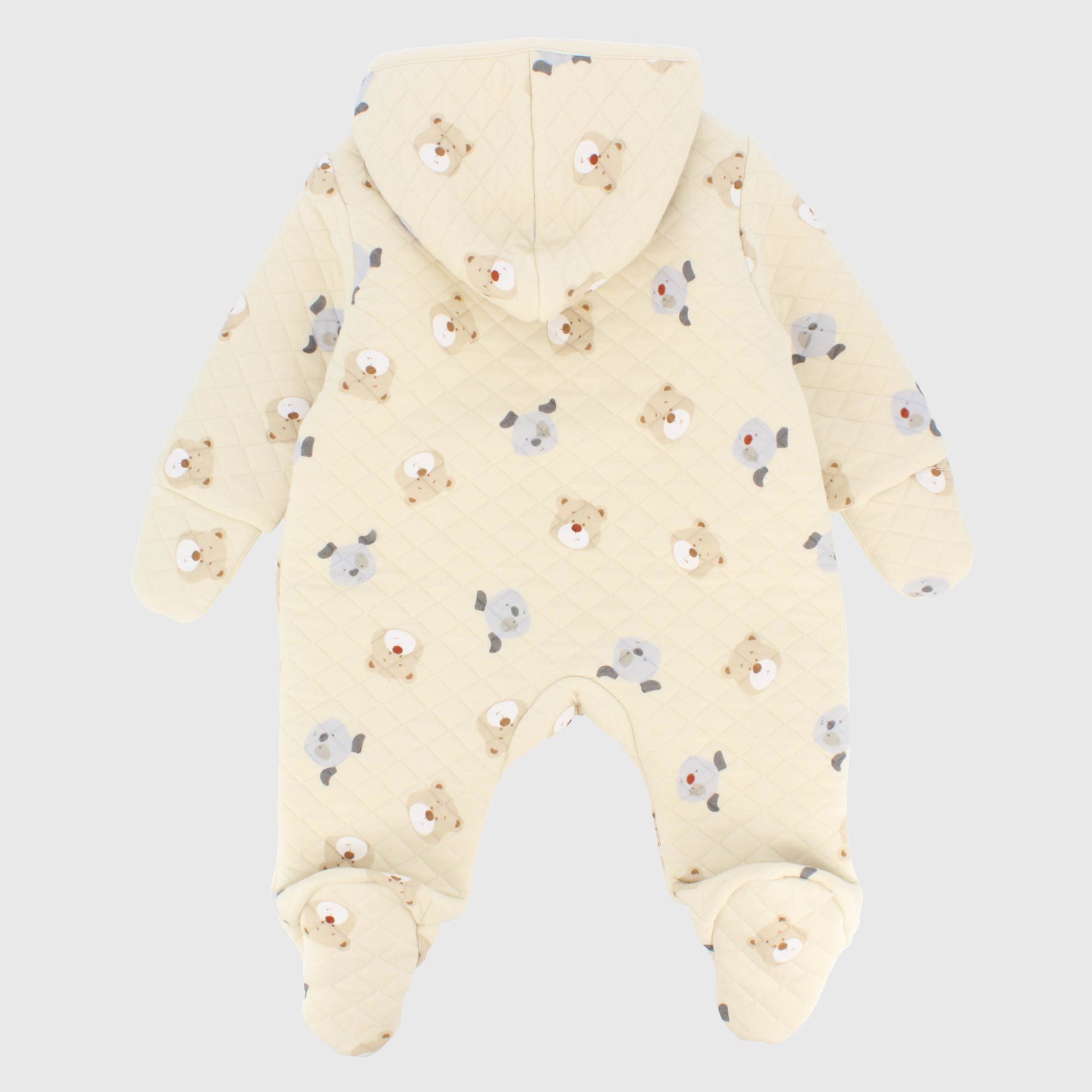 Tutona in felpa , con cappuccio, a maniche lunghe con muffole. Chiusura con doppia zip sul davanti. Stampa all-over con animaletti. Fodera interna in jersey.