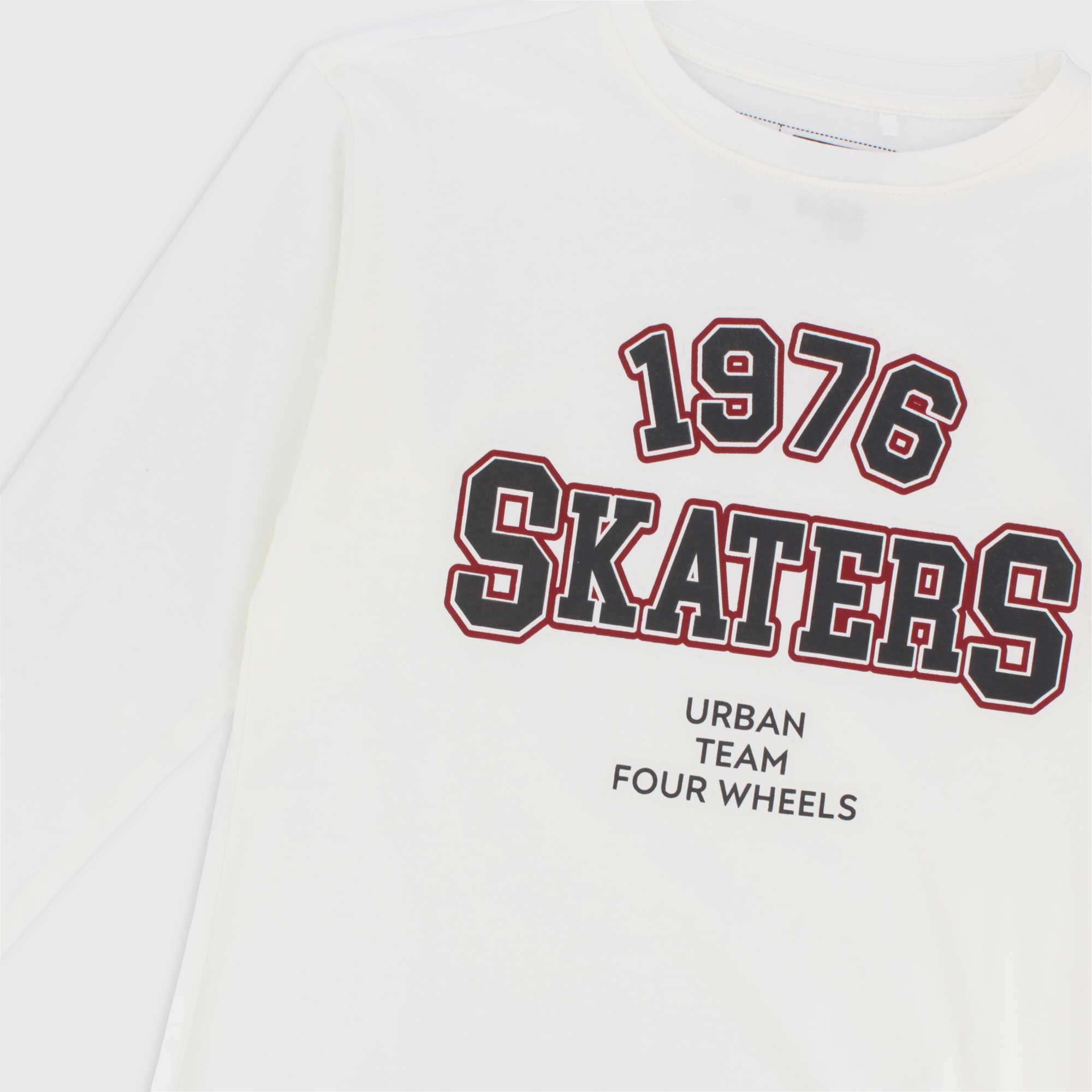 Maglietta oversize in jersey, girocollo, a maniche lunghe. Stampa con scritte sul davanti.