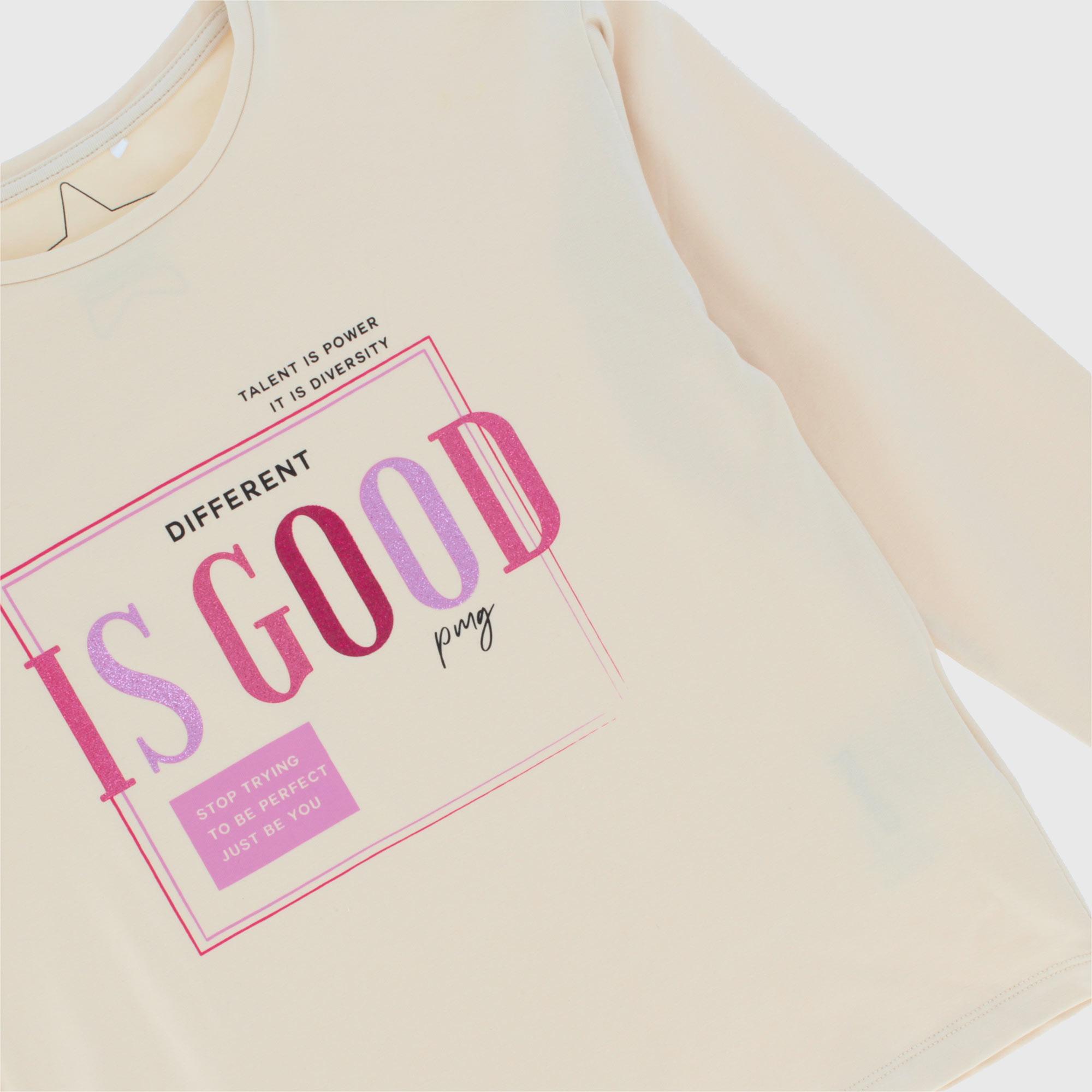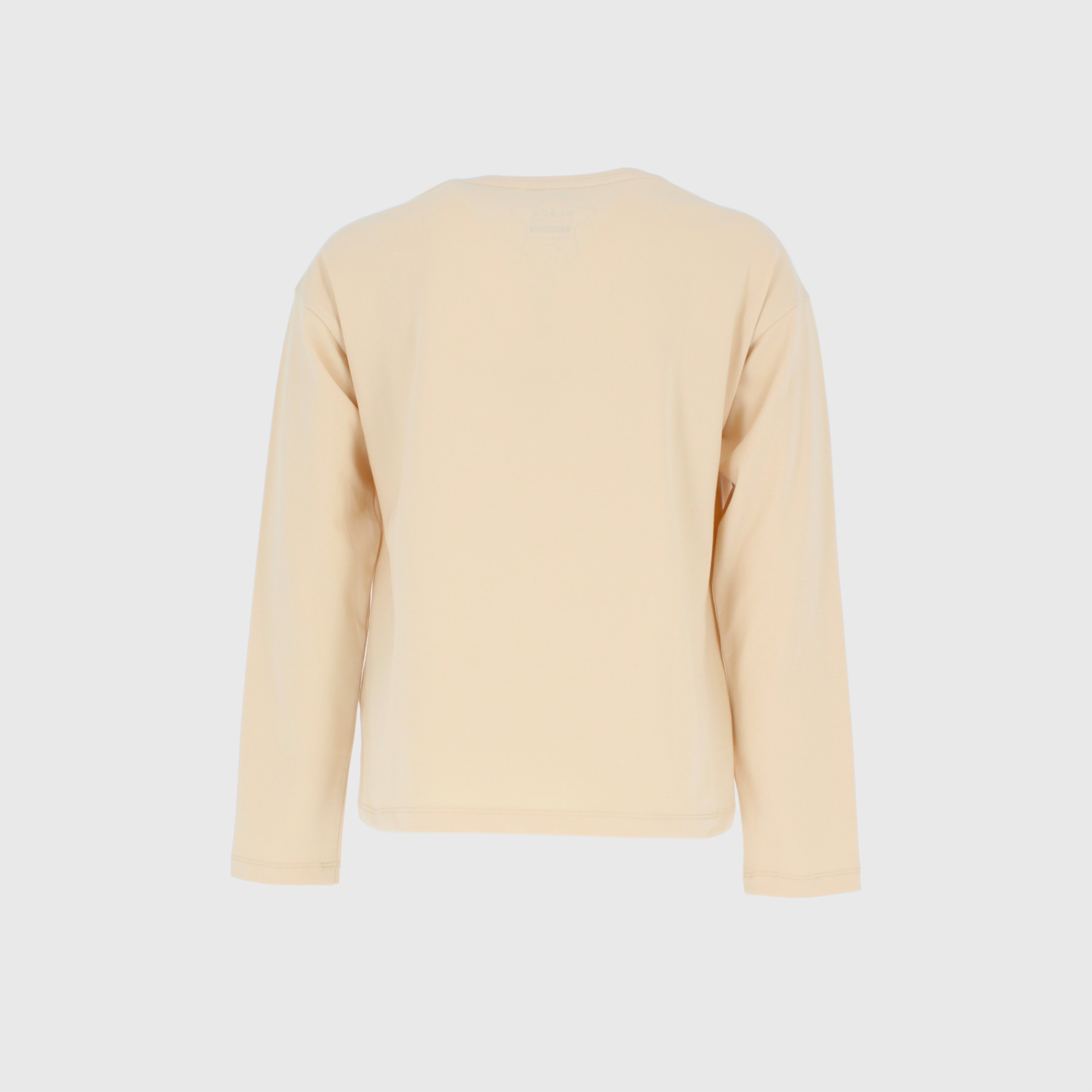 Maglietta oversize in jersey elasticizzato, girocollo, a maniche lunghe. Stampa con dettagli lurex sul davanti.
