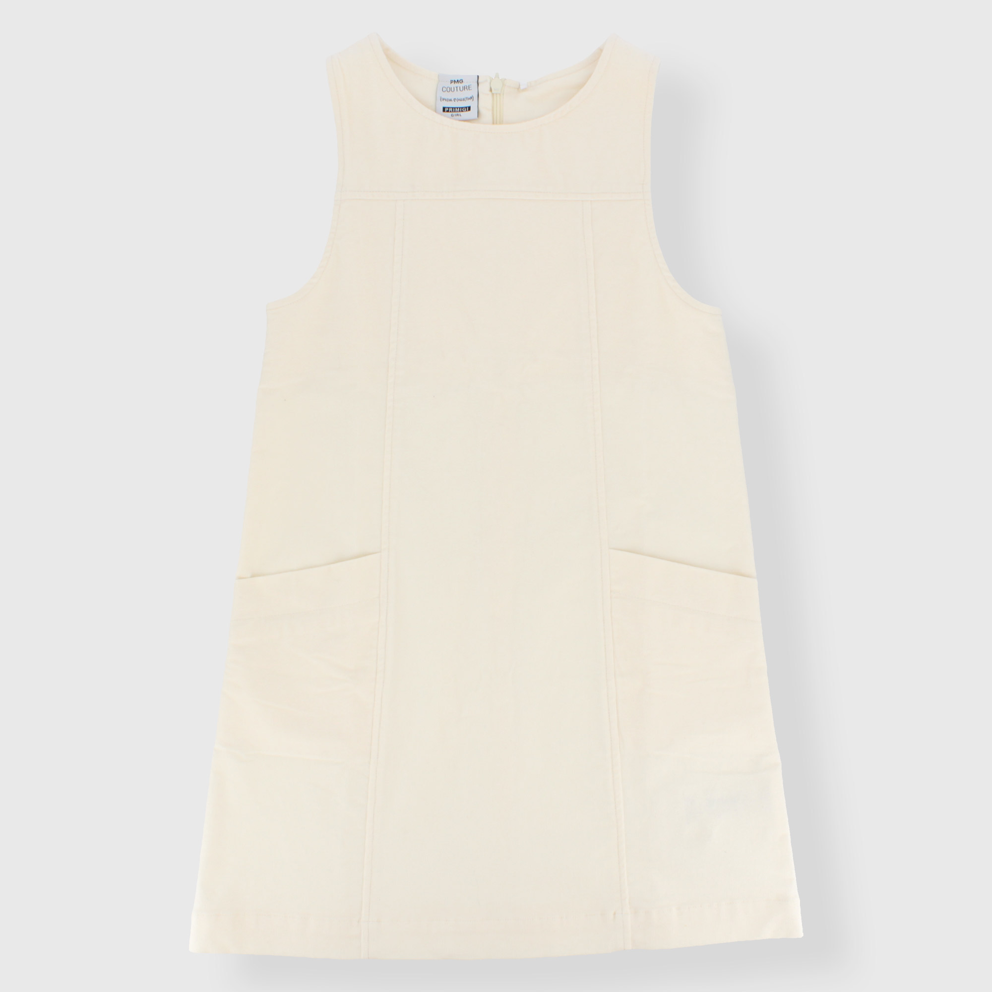 Vestito in velluto a costine, girocollo, senza maniche. Chiusura con zip sul retro. Tasche sul davanti.