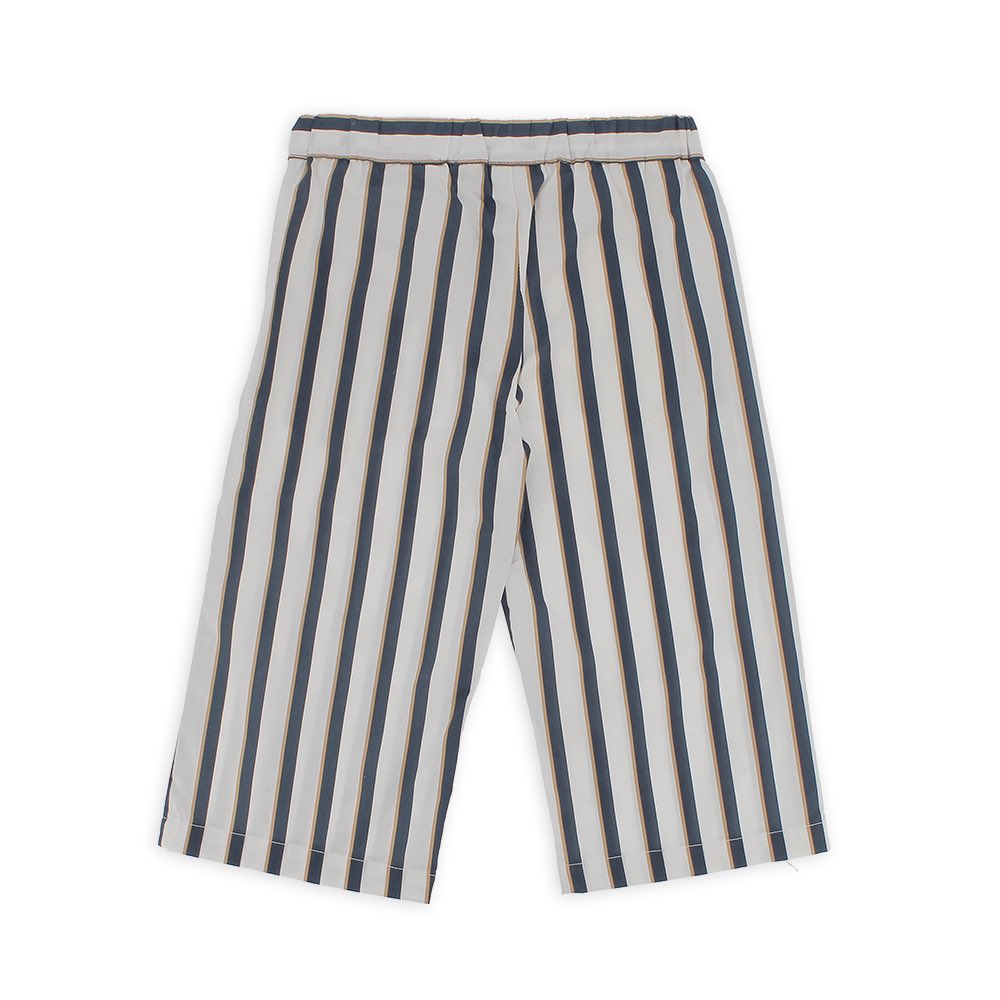 Брюки-кюлоты из поплина с принтом в полоску и резинкой на талии. Французские карманы и бант на талии.