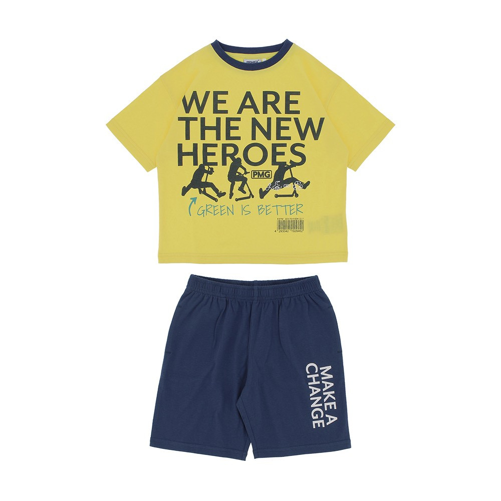 Комплект-двойка. Футболка из джерси с короткими рукавами и круглым вырезом с принтом спереди. Трикотажные шорты-бермуды с эластичной талией.