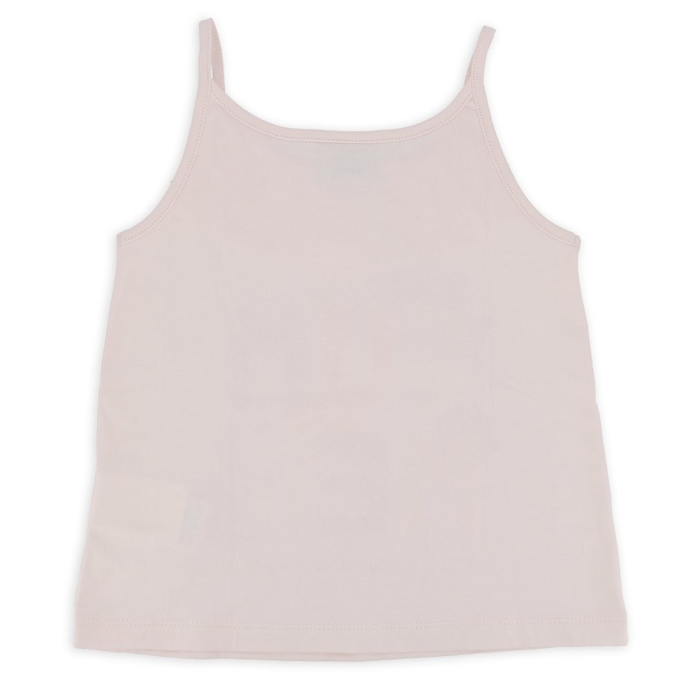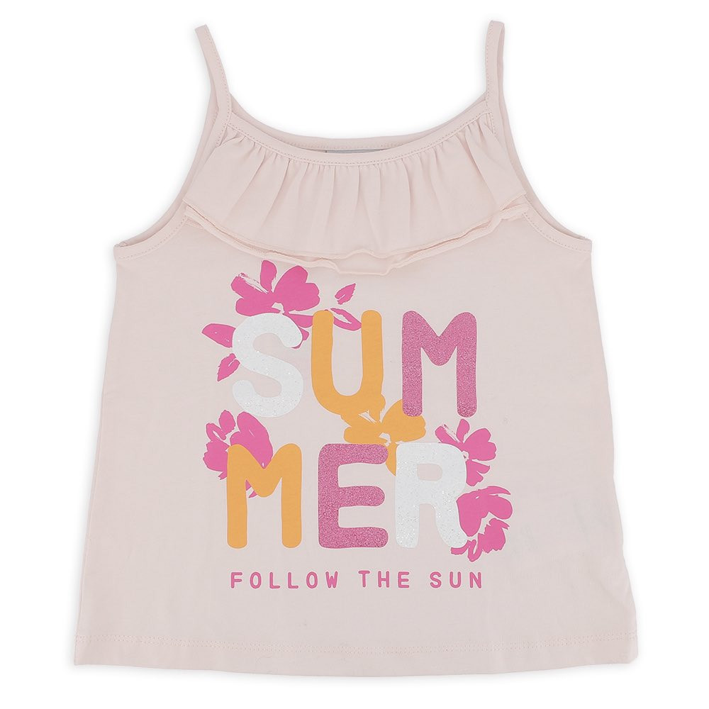 Майка из джерси на тонких бретелях. Вырез с воланами и принтом спереди.