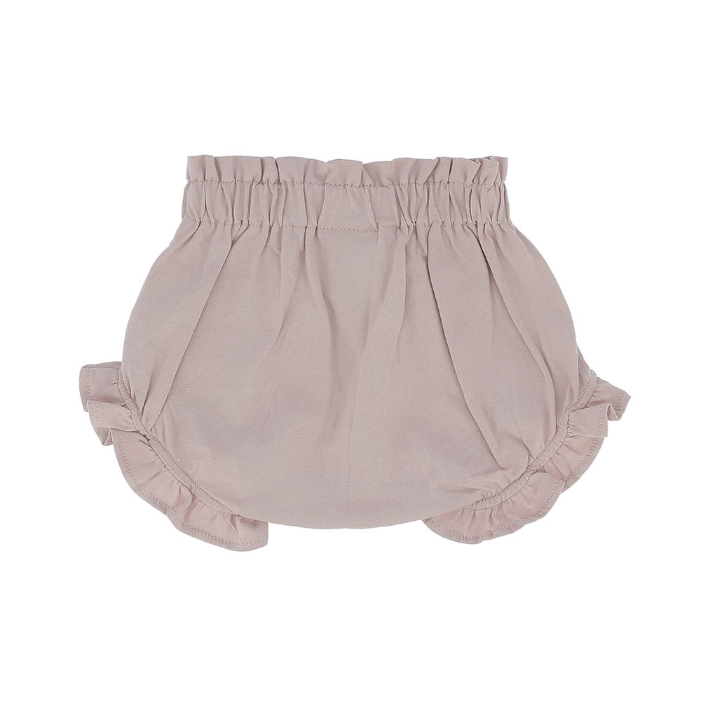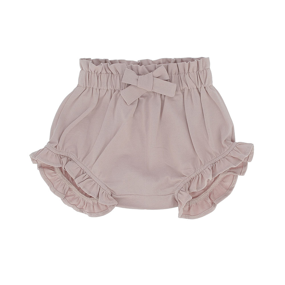 Кюлоты из хлопка с эластичной талией. На низ нанесены рюши, а на талии бант. Эта одежда экологически устойчива, потому что изготовлена из чистого органического хлопка.
