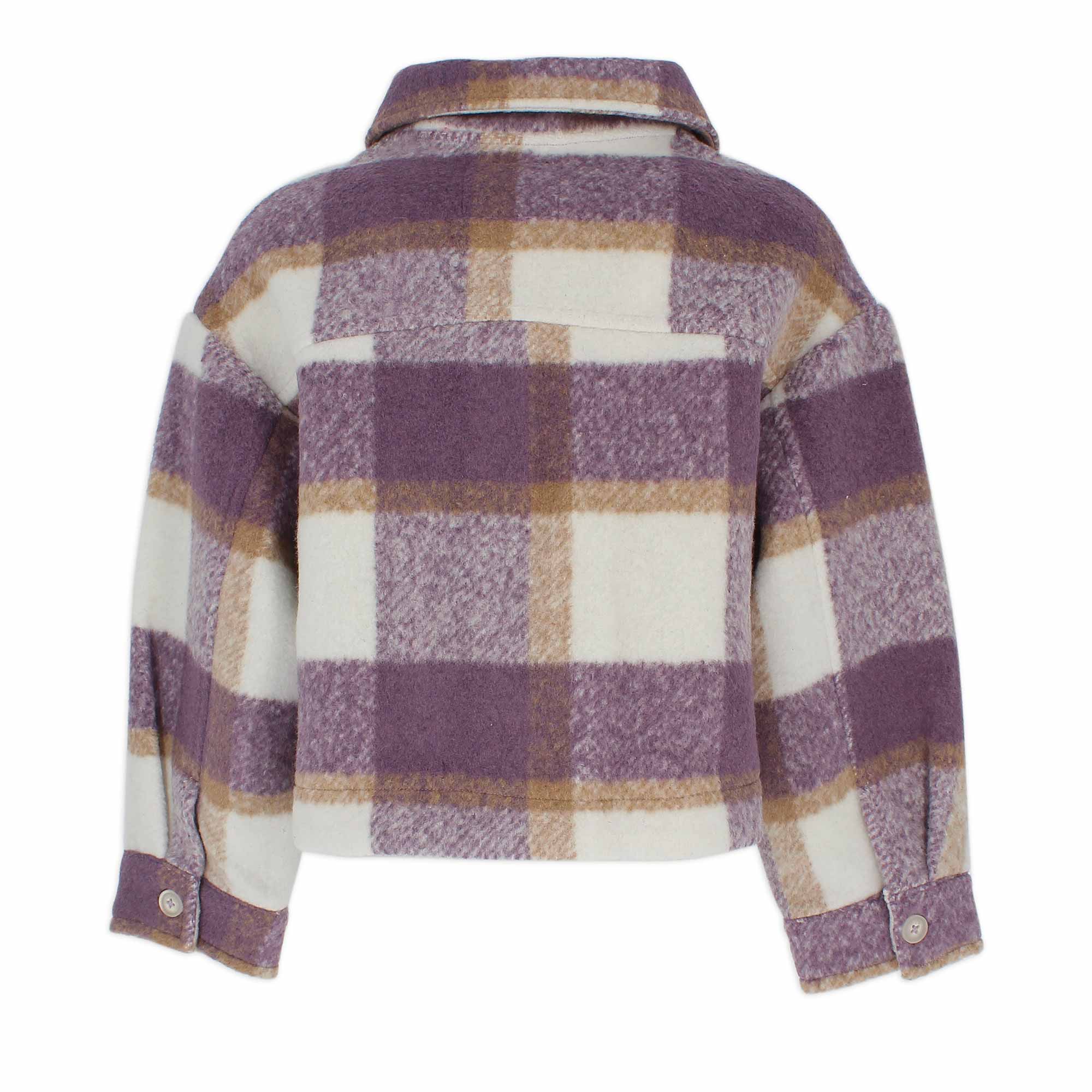 Рубашка оверсайз укороченная фланелевая для девочки, фиолетовый