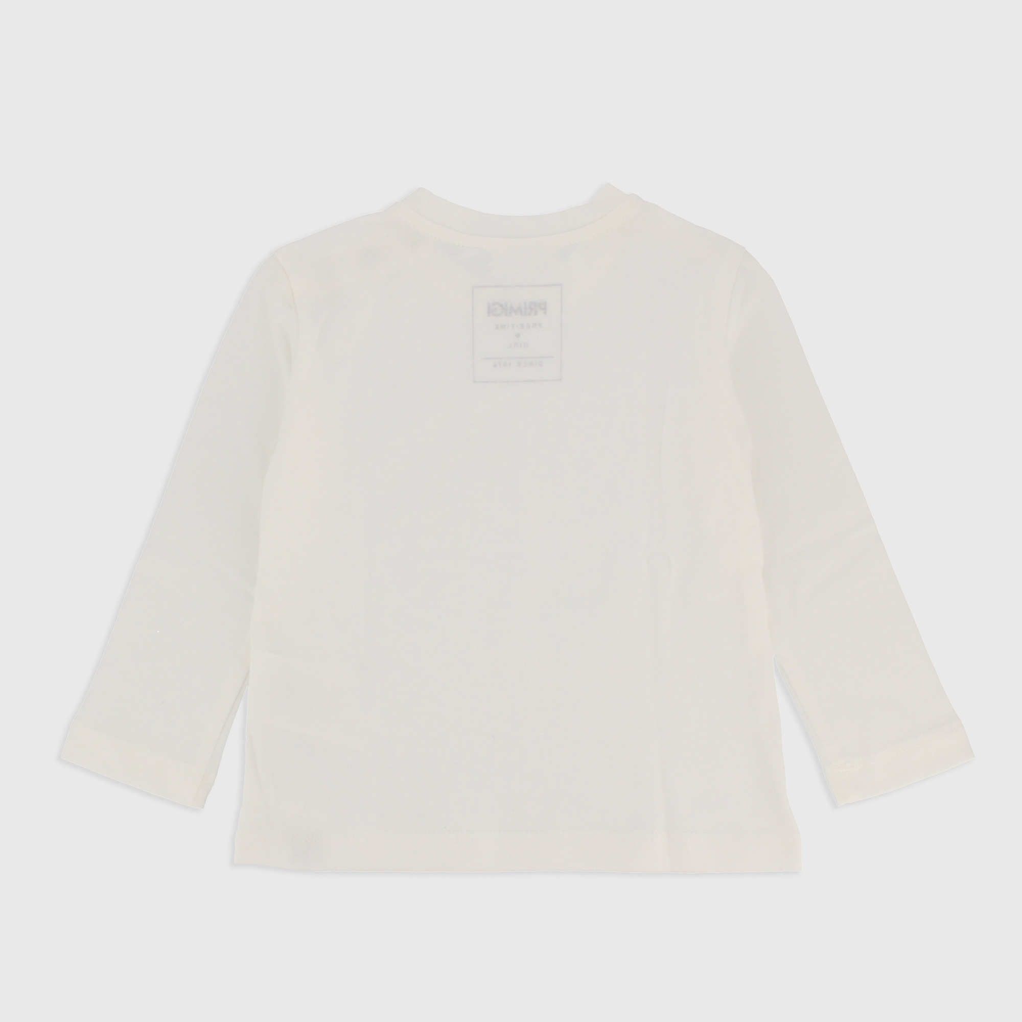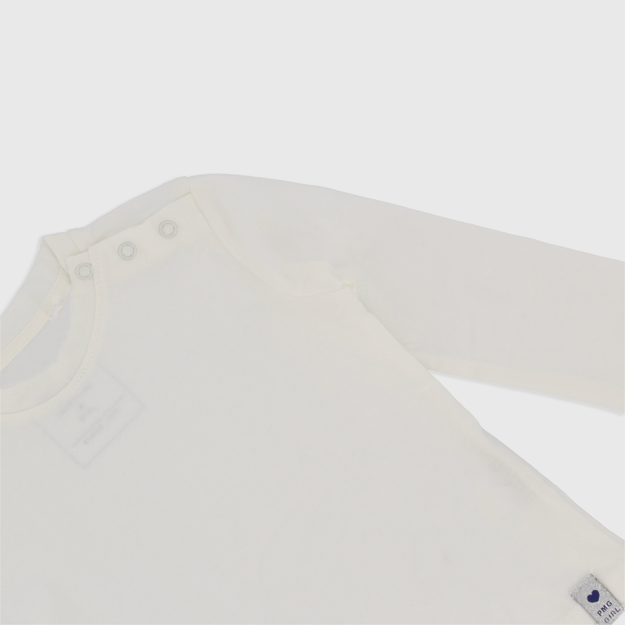 Футболка из джерси с круглым вырезом и длинными рукавами. Застежка на кнопки на плече. Этикетка из люрекса с нанесенным логотипом внизу.
