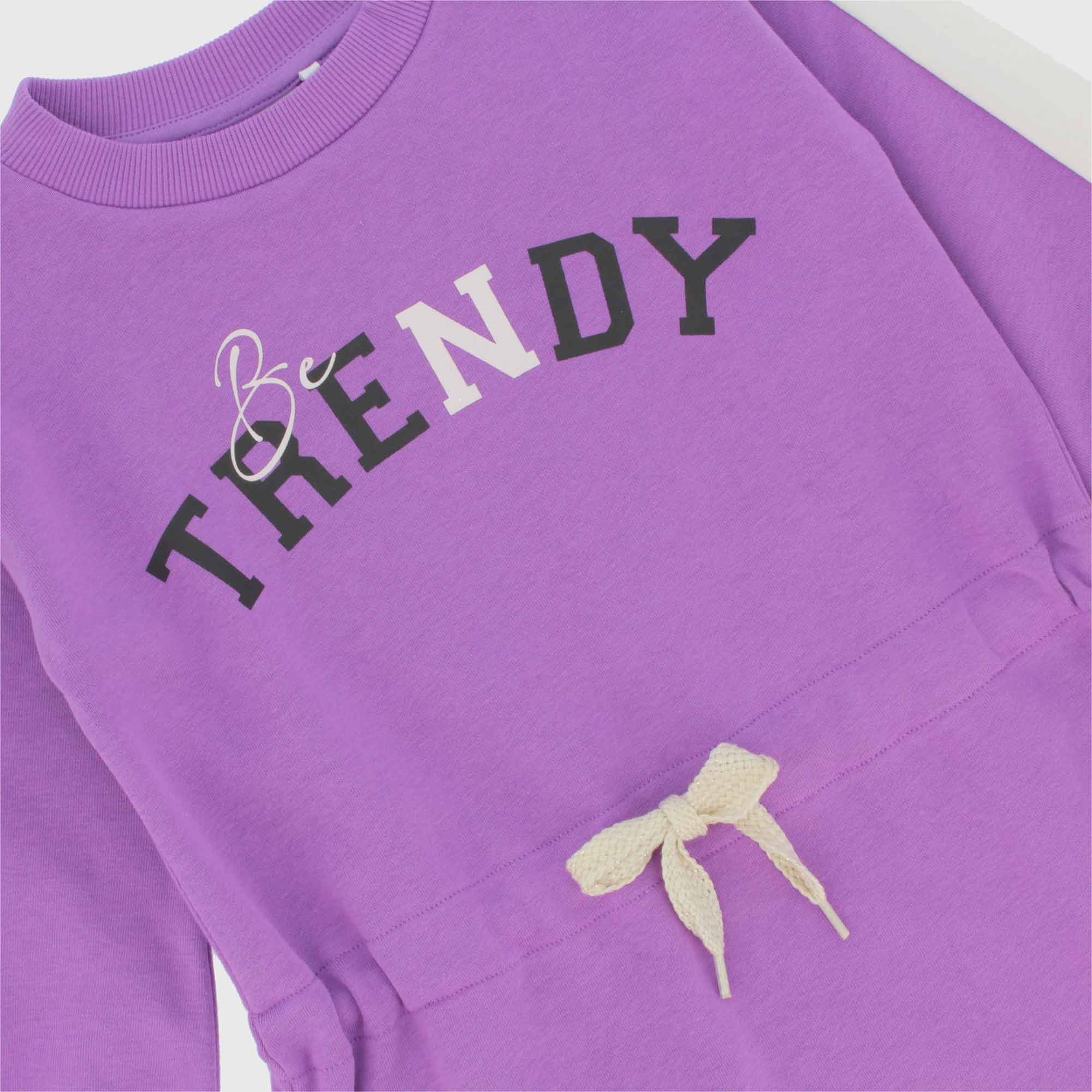 Платье-толстовка с круглым вырезом и длинными рукавами. Кулиска с люрексом на талии и принт с блестящими деталями спереди.