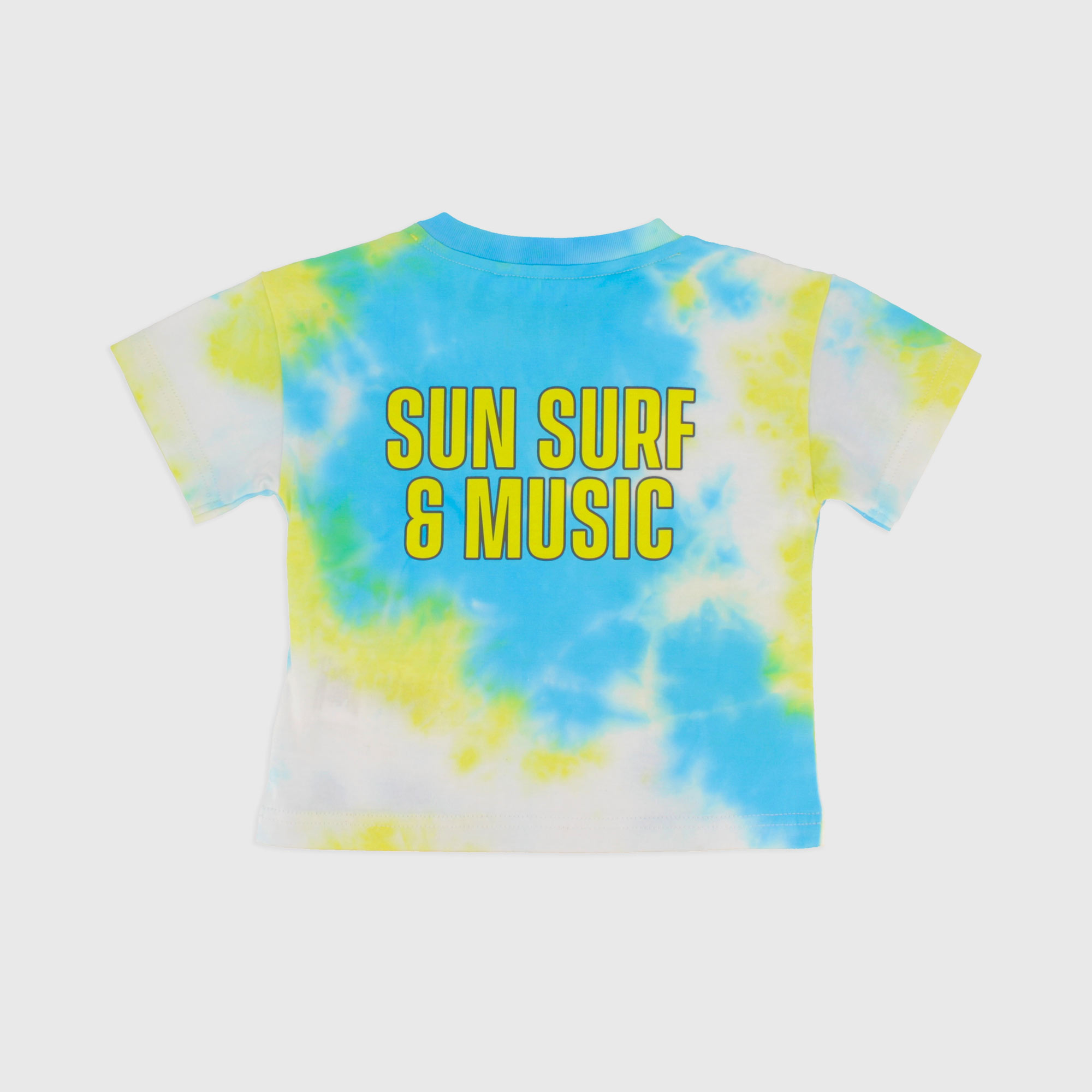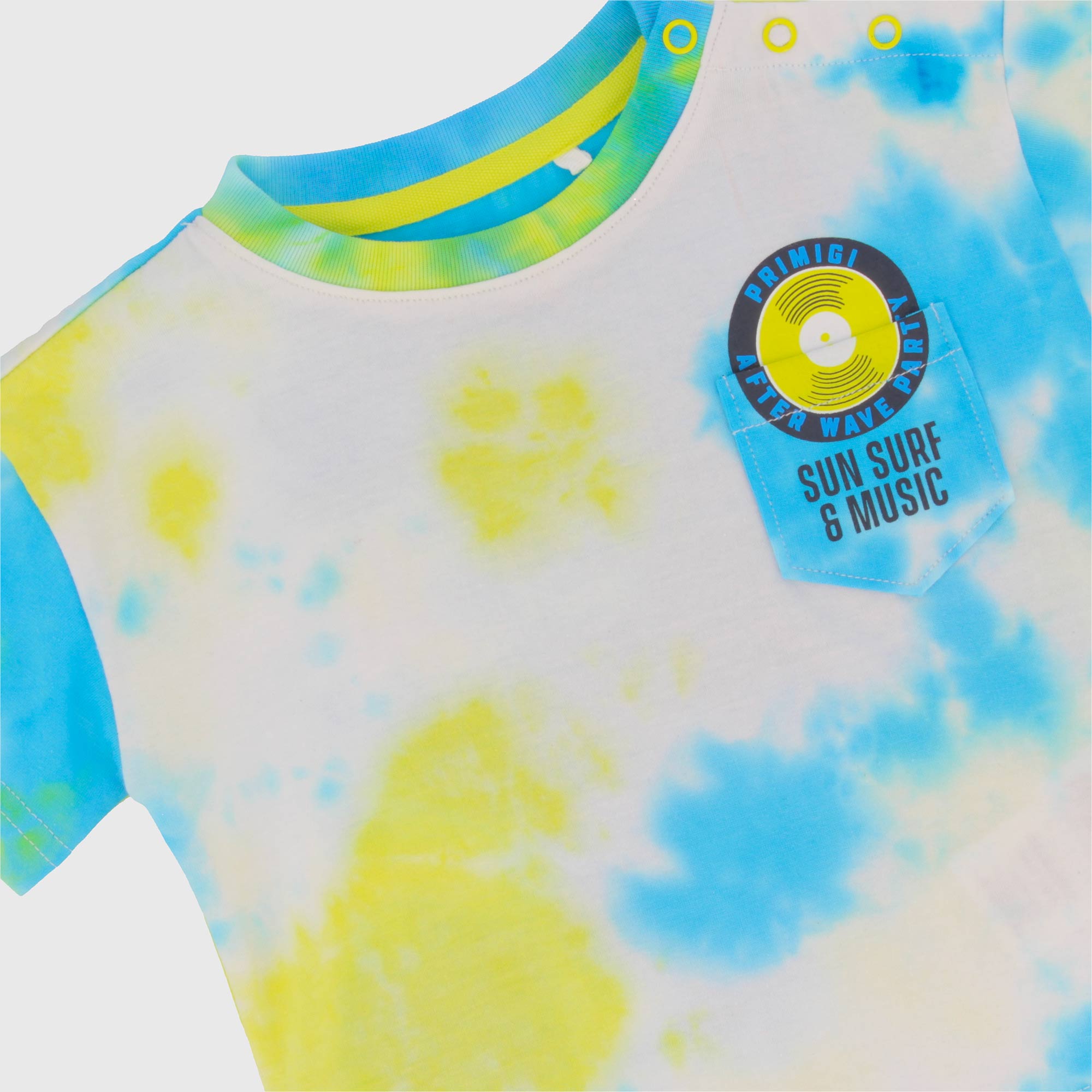 Футболка оверсайз из трикотажа, окрашенного в технике тай-дай, с круглым вырезом и короткими рукавами. Застежка на пуговицу на плече. Карман и принт спереди и сзади.