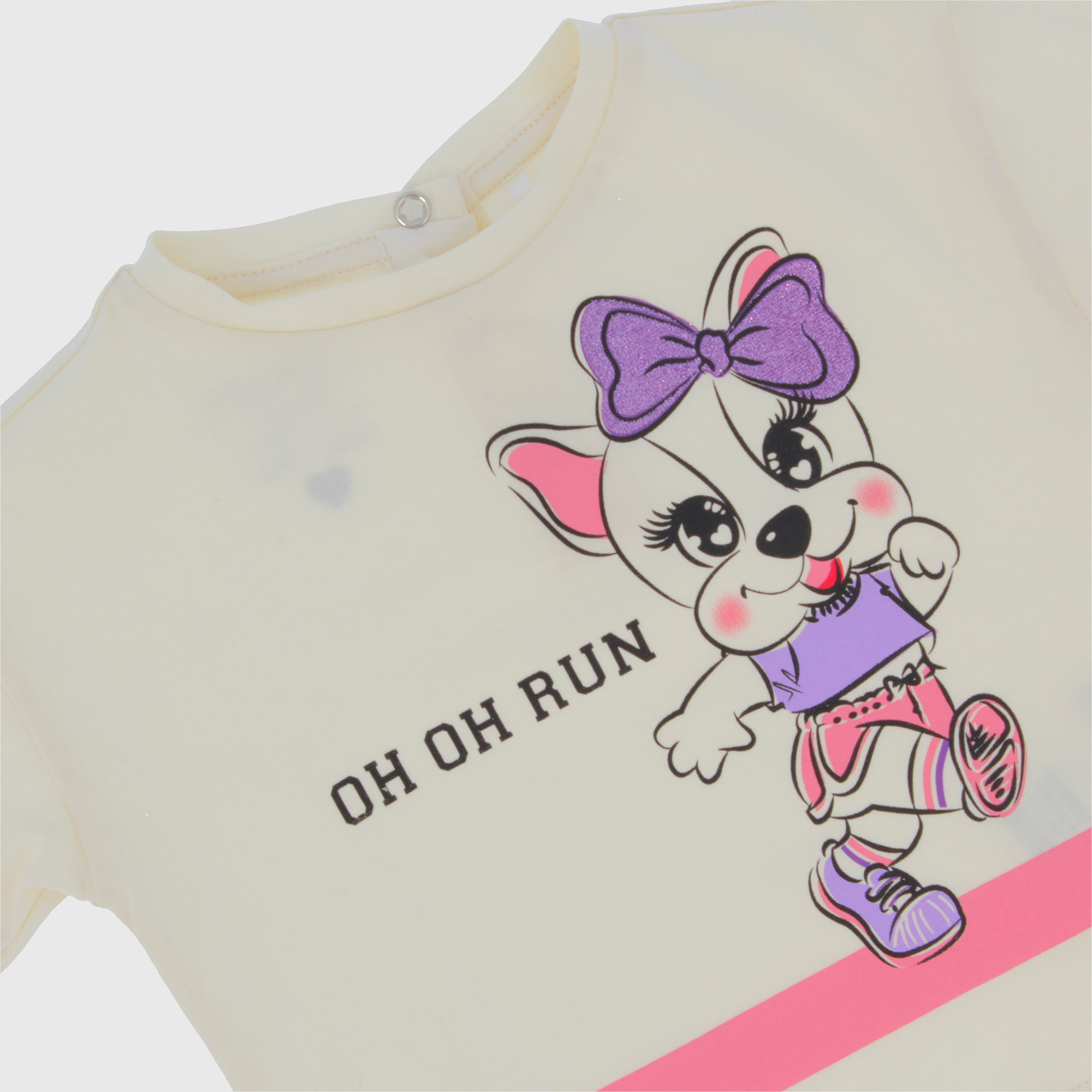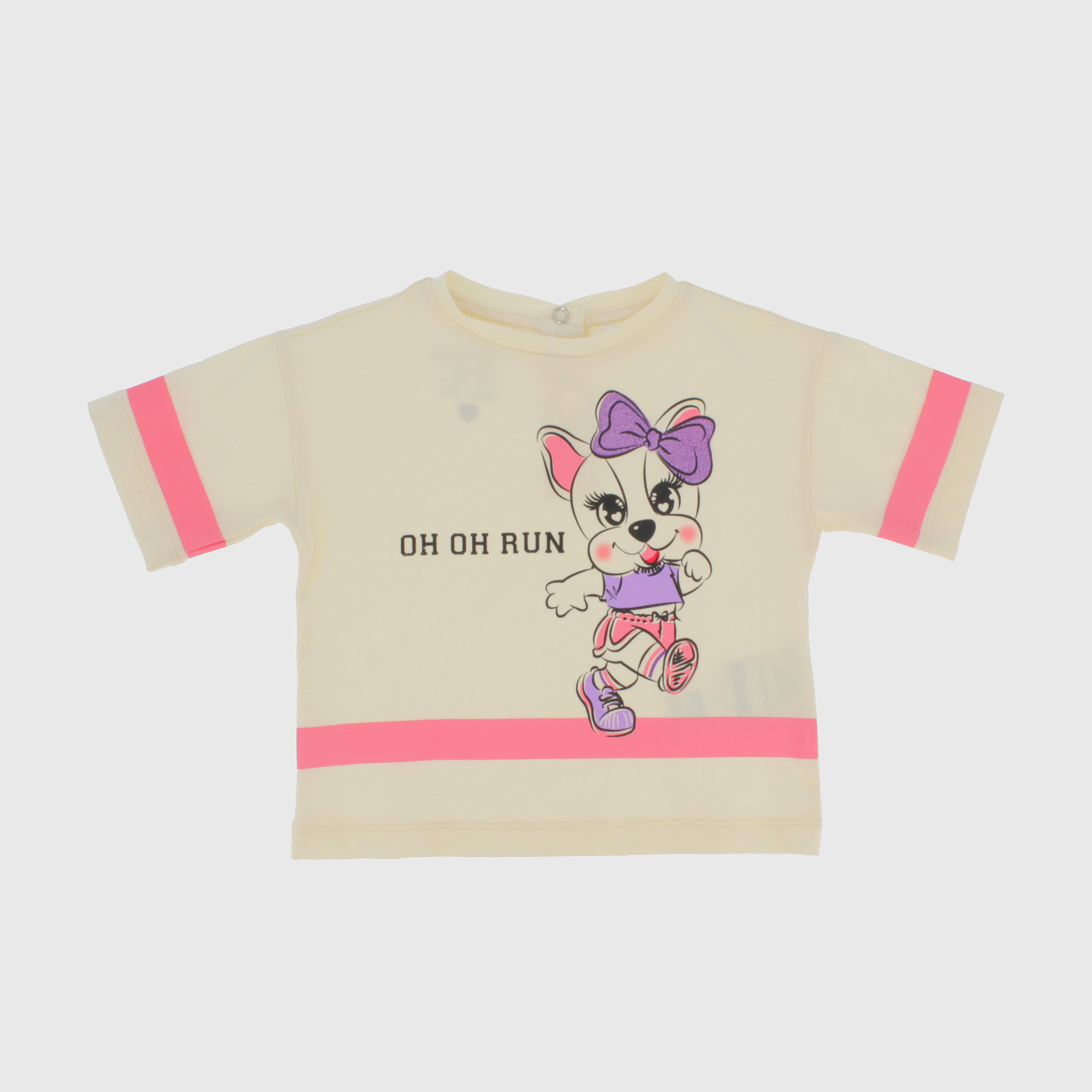 Футболка оверсайз из джерси, круглый вырез, короткие рукава. Застежка сзади на кнопки. Принт с деталями из люрекса спереди и на рукавах.