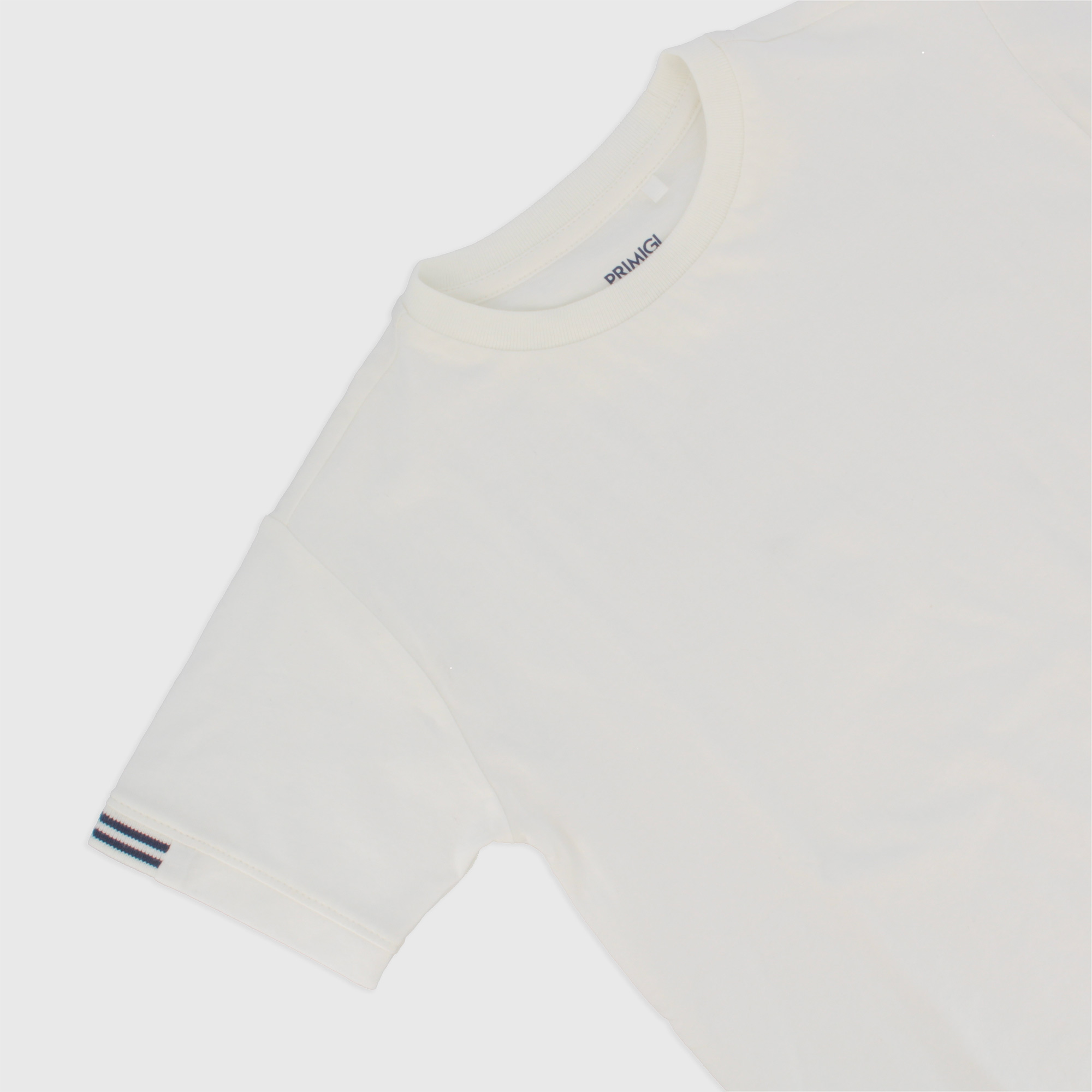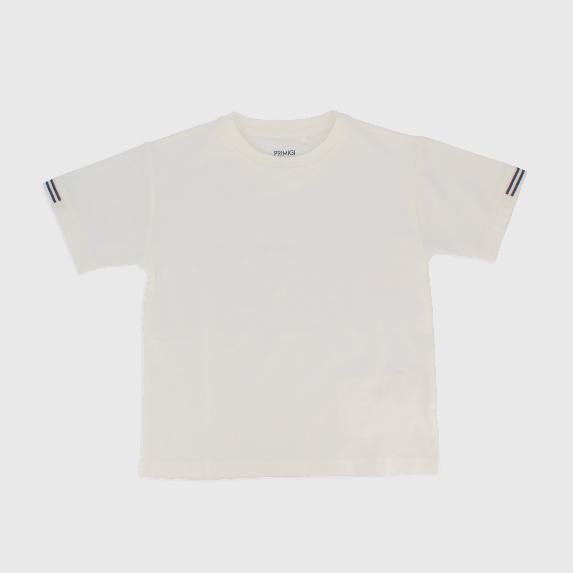 Футболка из джерси, круглый вырез, короткие рукава. Ребристая полосатая вставка по низу рукава.