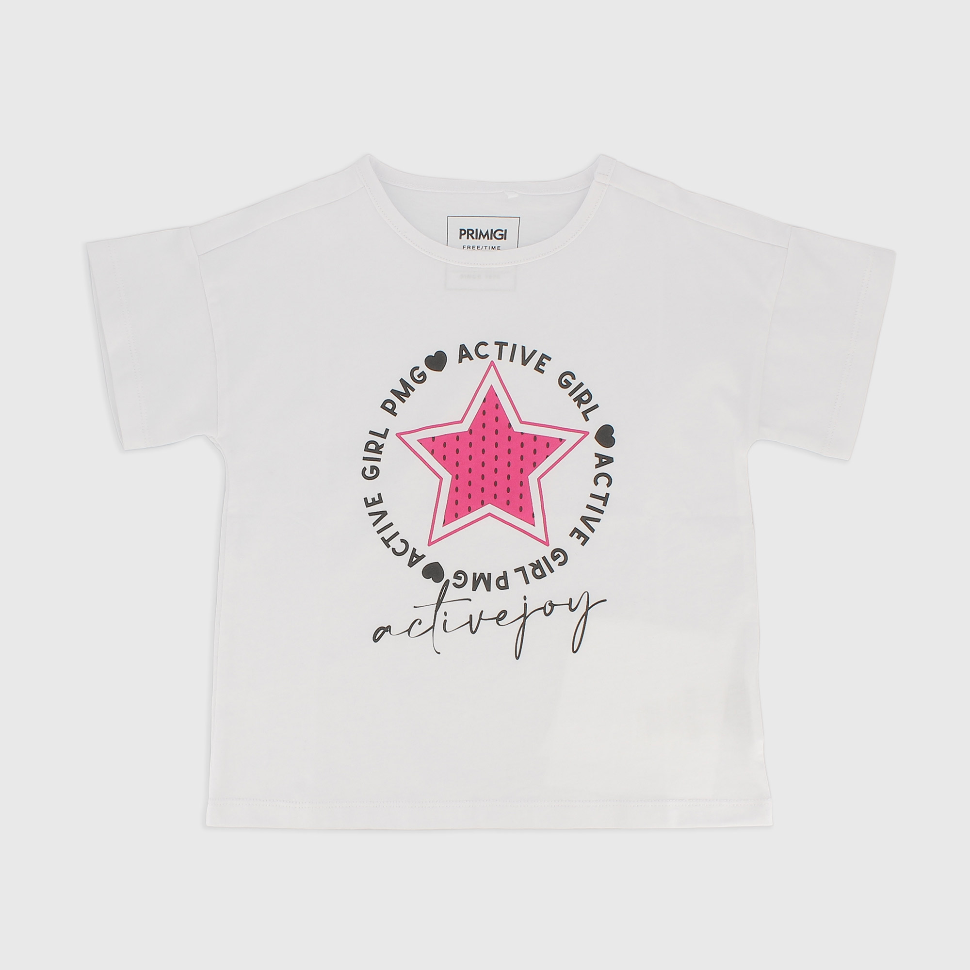 Футболка из джерси, круглый вырез, короткие рукава. Фронтальная печать.