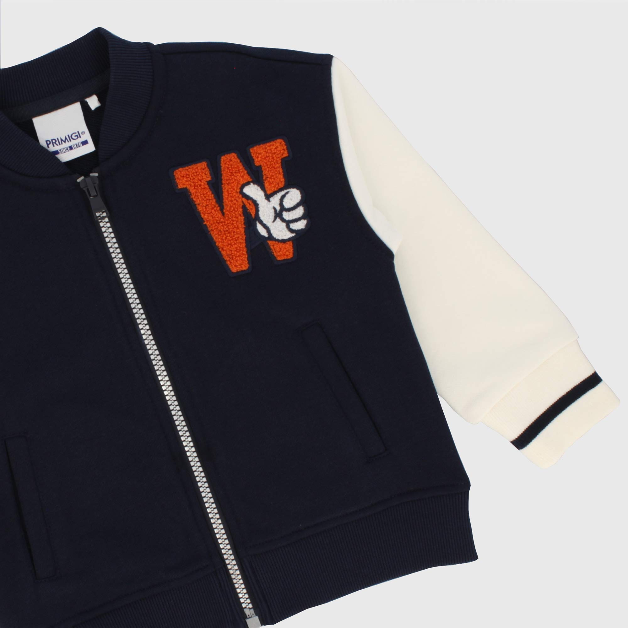 Открытая толстовка в стиле бомбер с длинными рукавами. Ребристый воротник и манжеты. Застежка-молния и нашивка с эффектом махровой ткани спереди. Прорезные карманы и нашивка с надписью сзади.