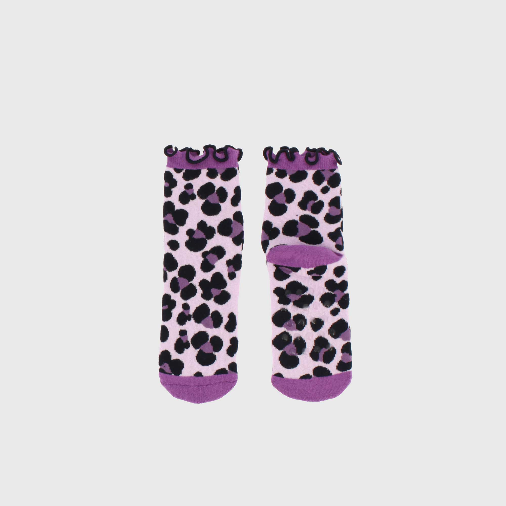 Носки с анималистичным рисунком и нескользящими резиновыми подушечками. Зубчатый низ и эластичный край.