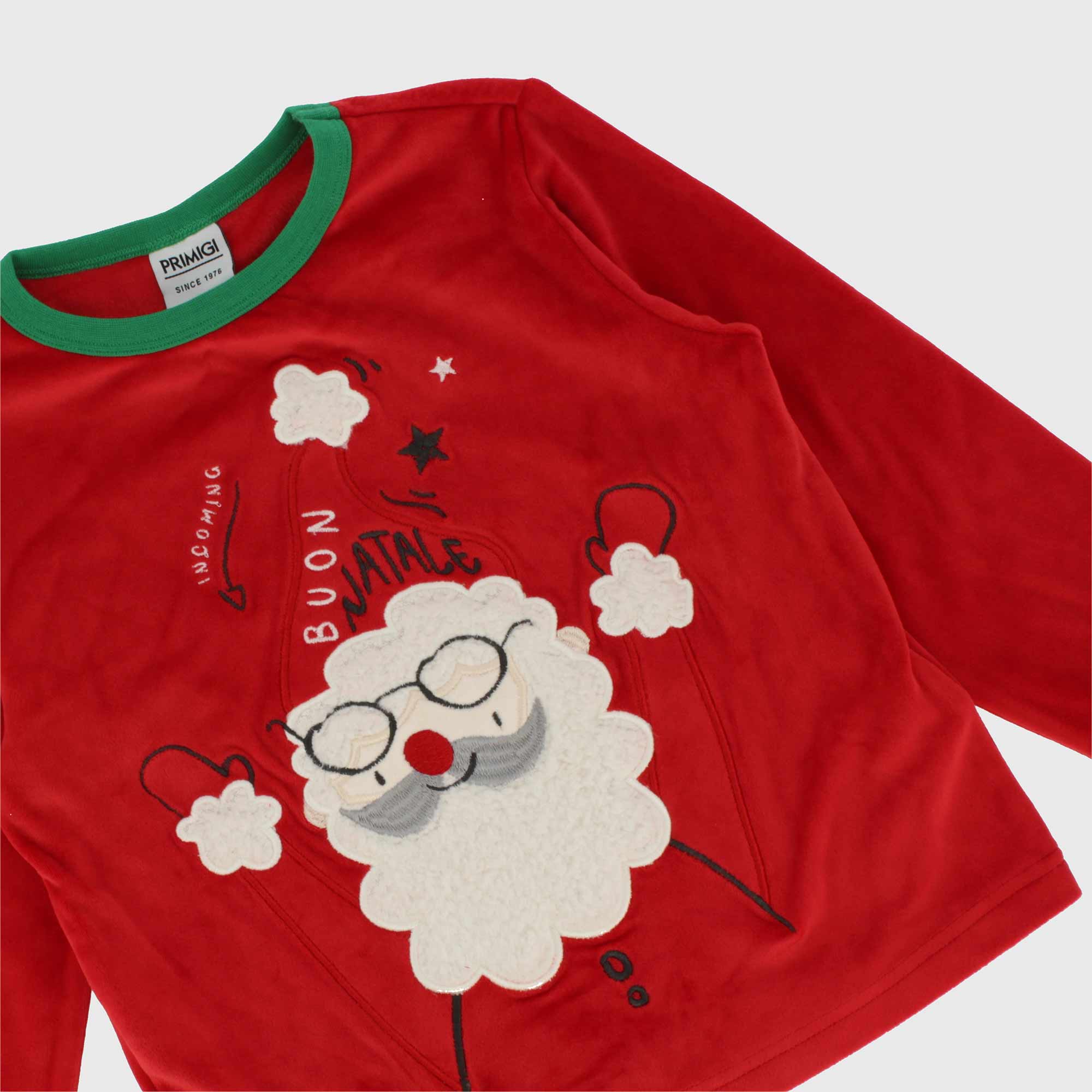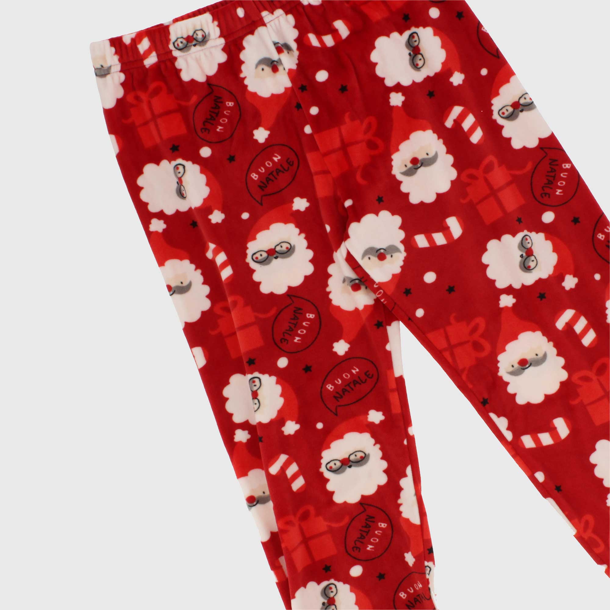 Пижамный комплект из флиса. Рубашка с круглым вырезом и длинными рукавами. Вышивка спереди и контрастные профили. Брюки с эластичной талией и ребристым низом. Сплошной принт Деда Мороза.