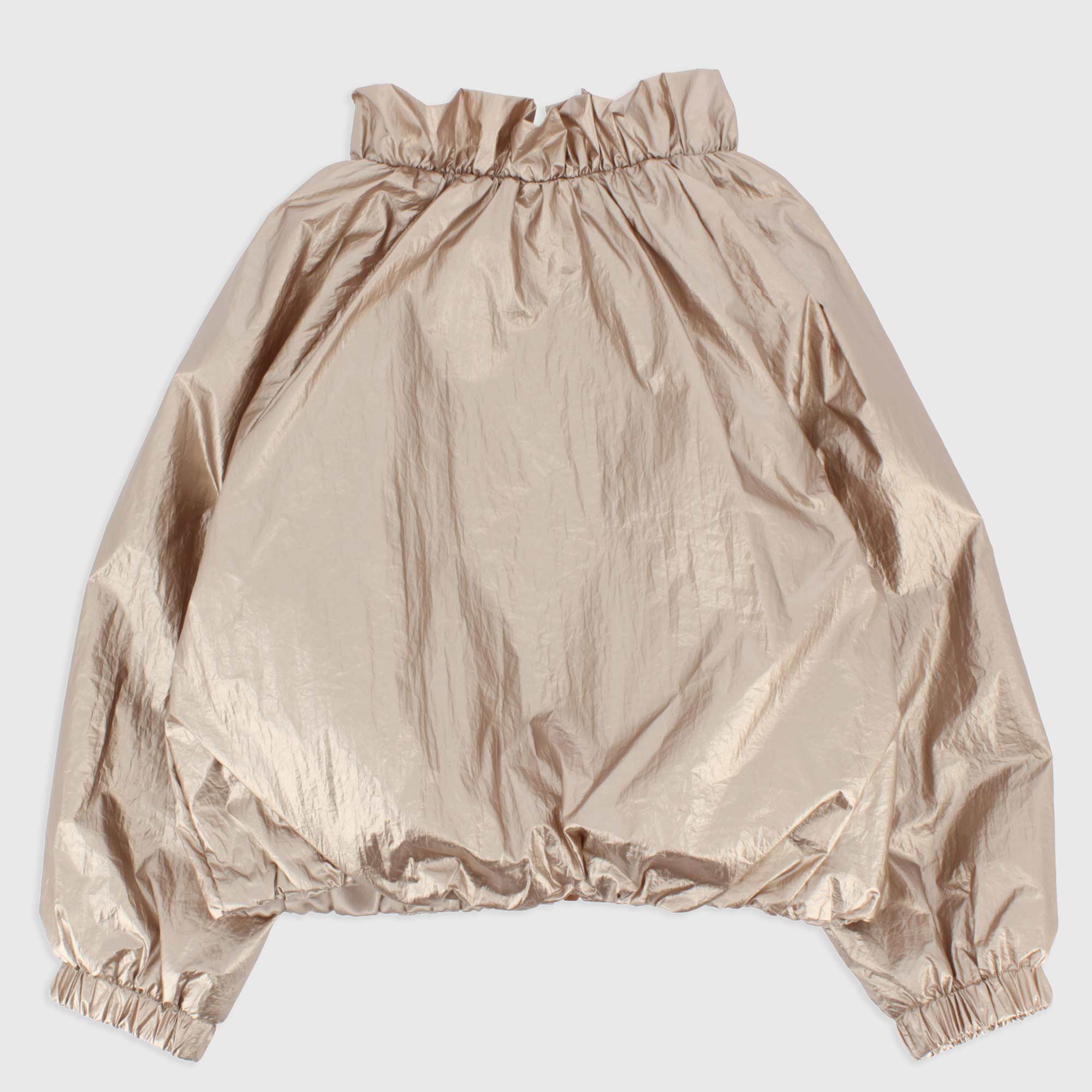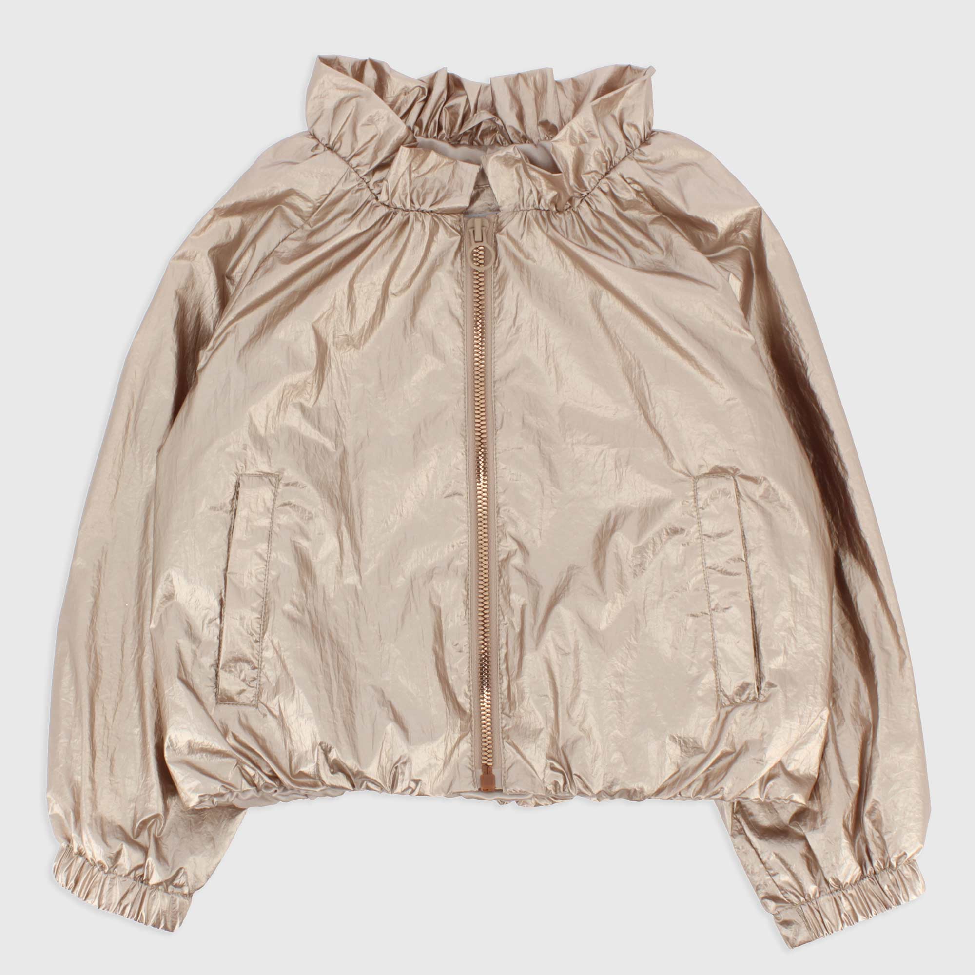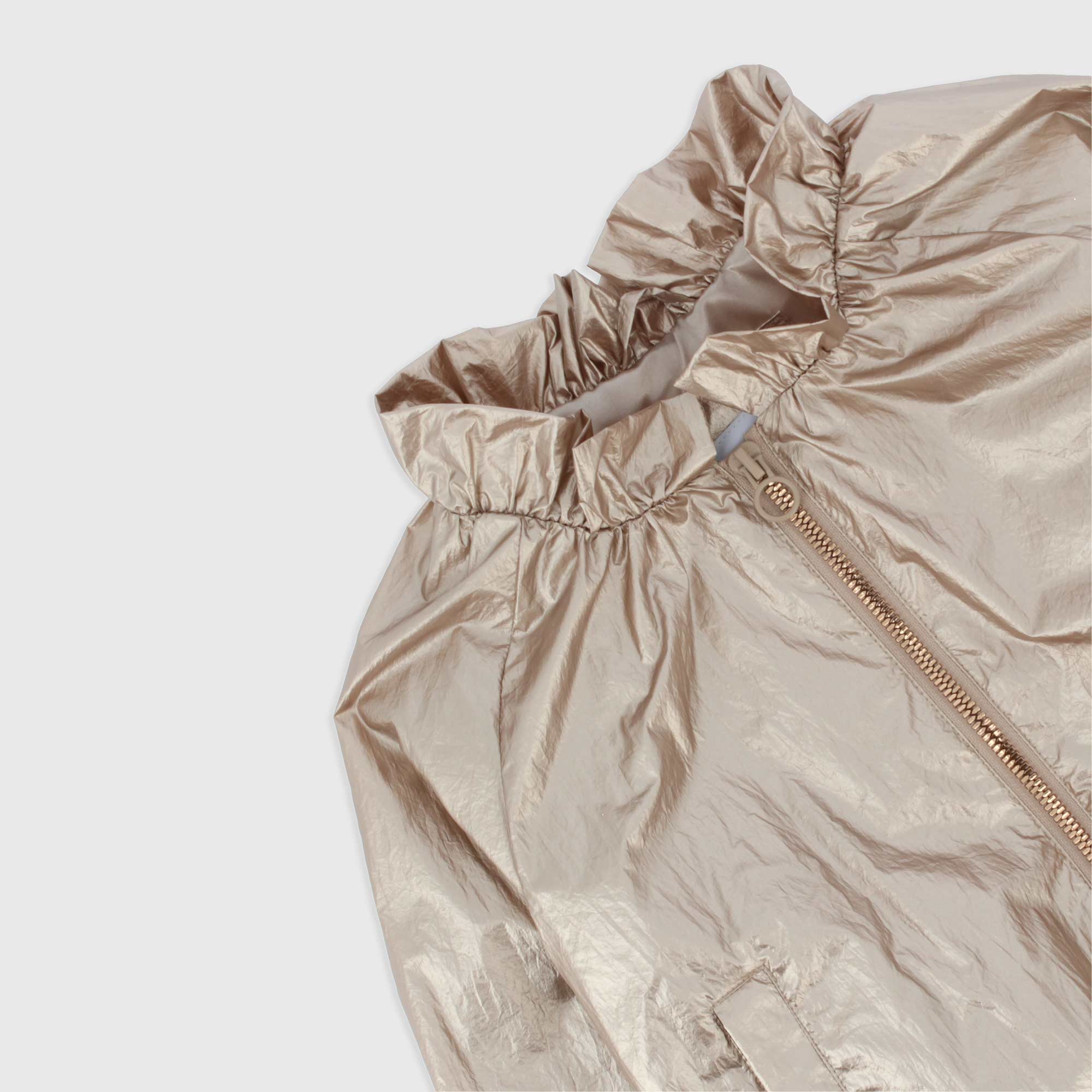 Куртка из нейлона с ламинированным эффектом, с рюшами на воротнике и длинными рукавами. Застежка-молния спереди. Эластичные манжеты и низ, а также прорезные карманы. Внутренняя подкладка