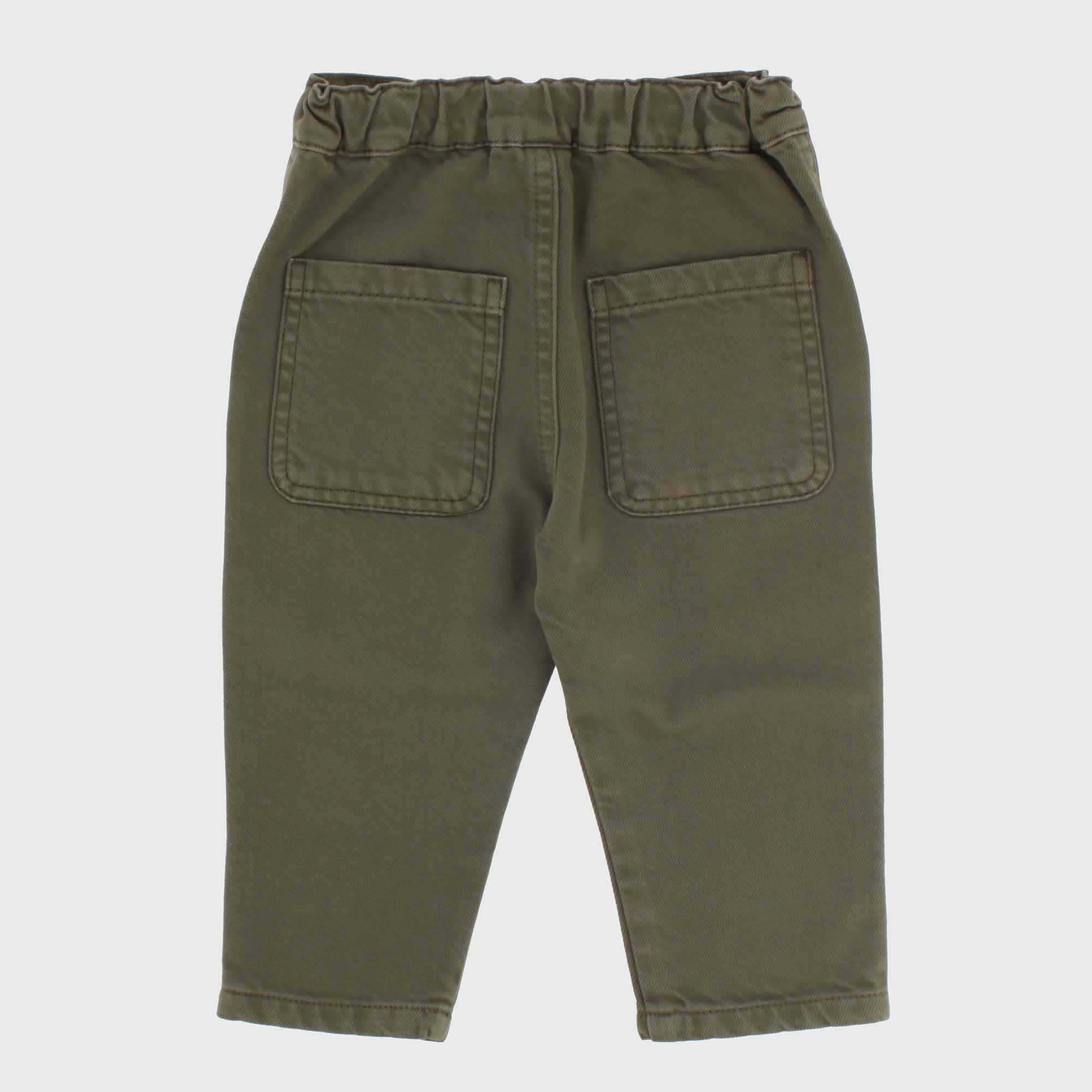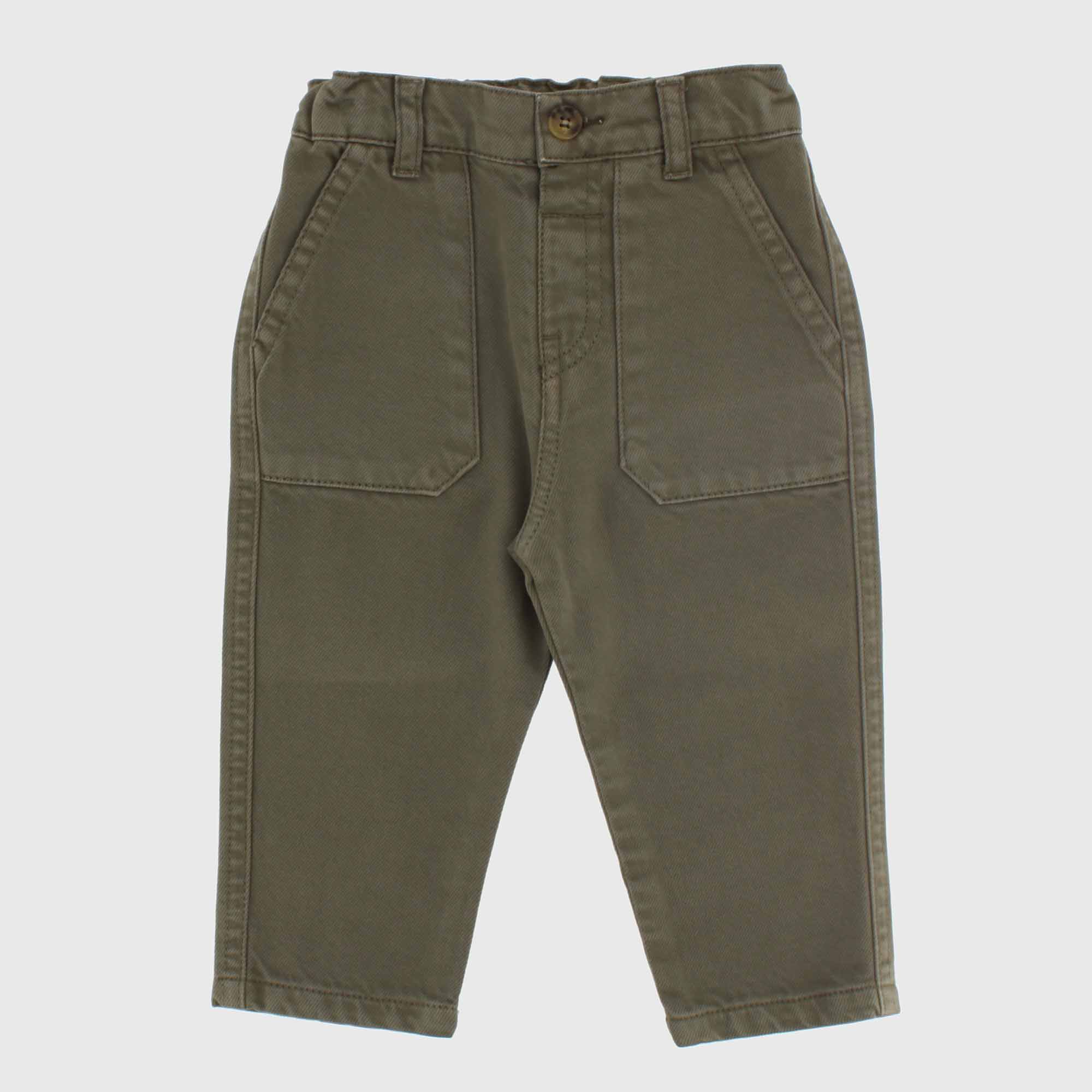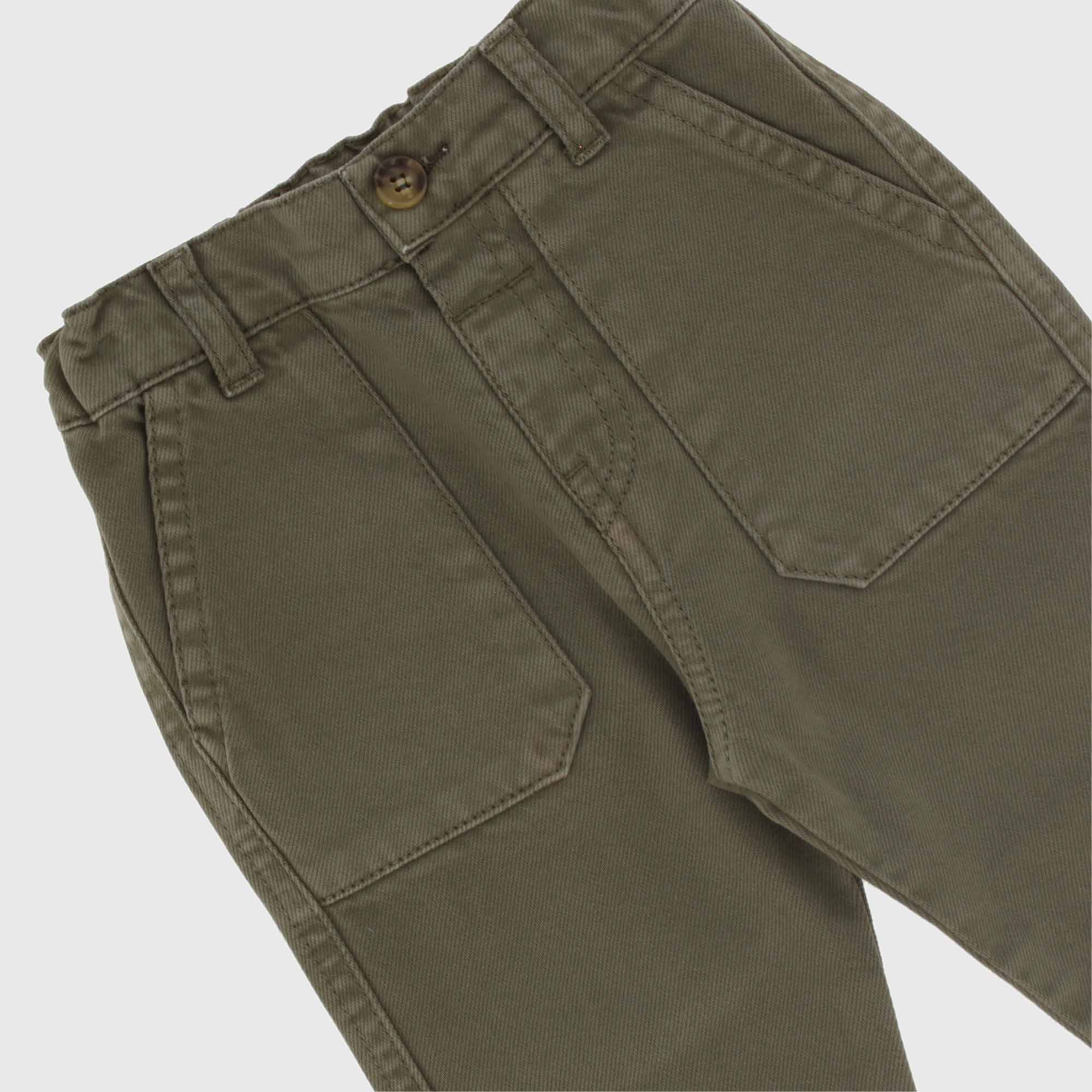 Брюки из хлопковой парусины с регулируемой внутренней талией. Застежка на пуговицу и молнию. Французские карманы спереди и накладные карманы сзади.