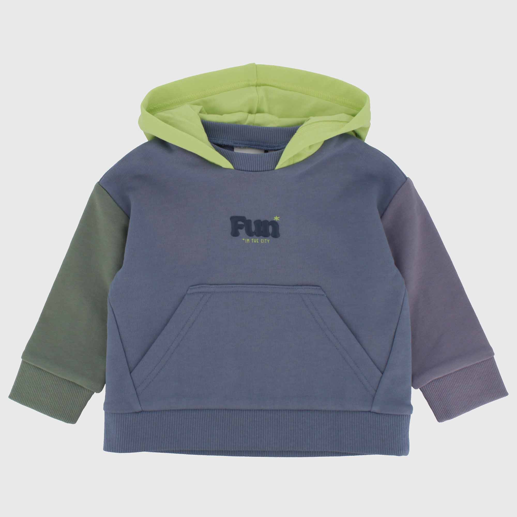 Толстовка с длинным рукавом. Карман-кенгуру. Тисненый принт спереди. Ребристые манжеты и низ.