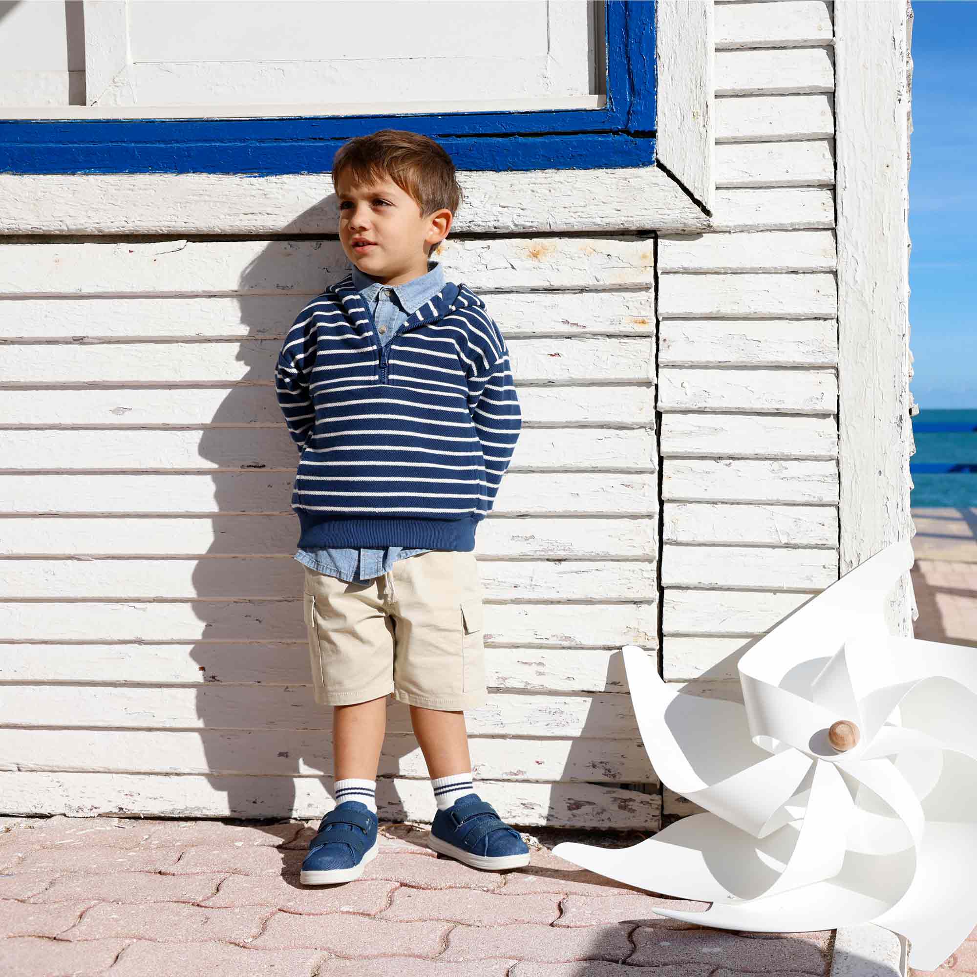 ТОЛСТОВКА НА ПОЛУМОЛНИИ С КАПЮШОНОМ ДЛЯ МАЛЬЧИКОВ, СИНИЙ