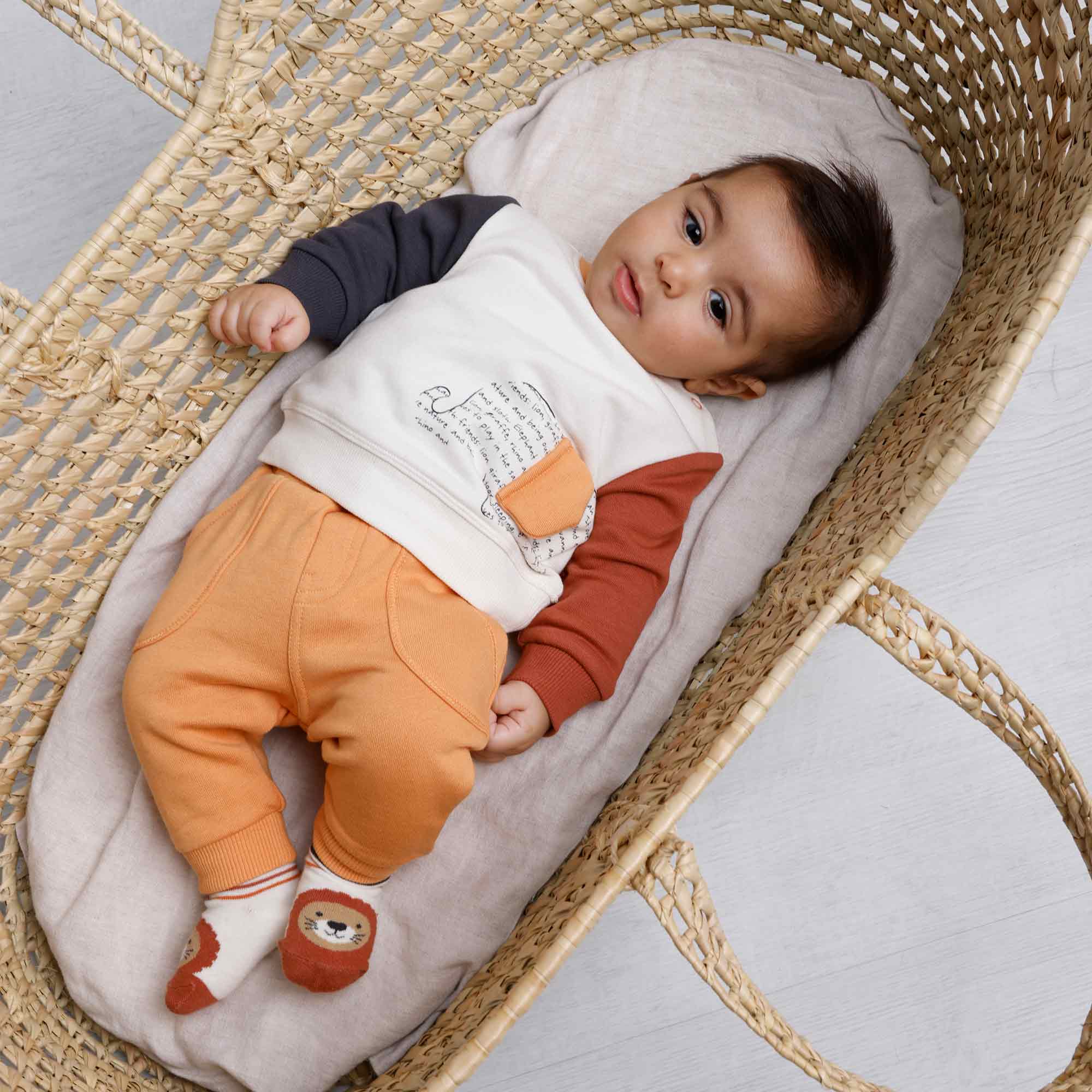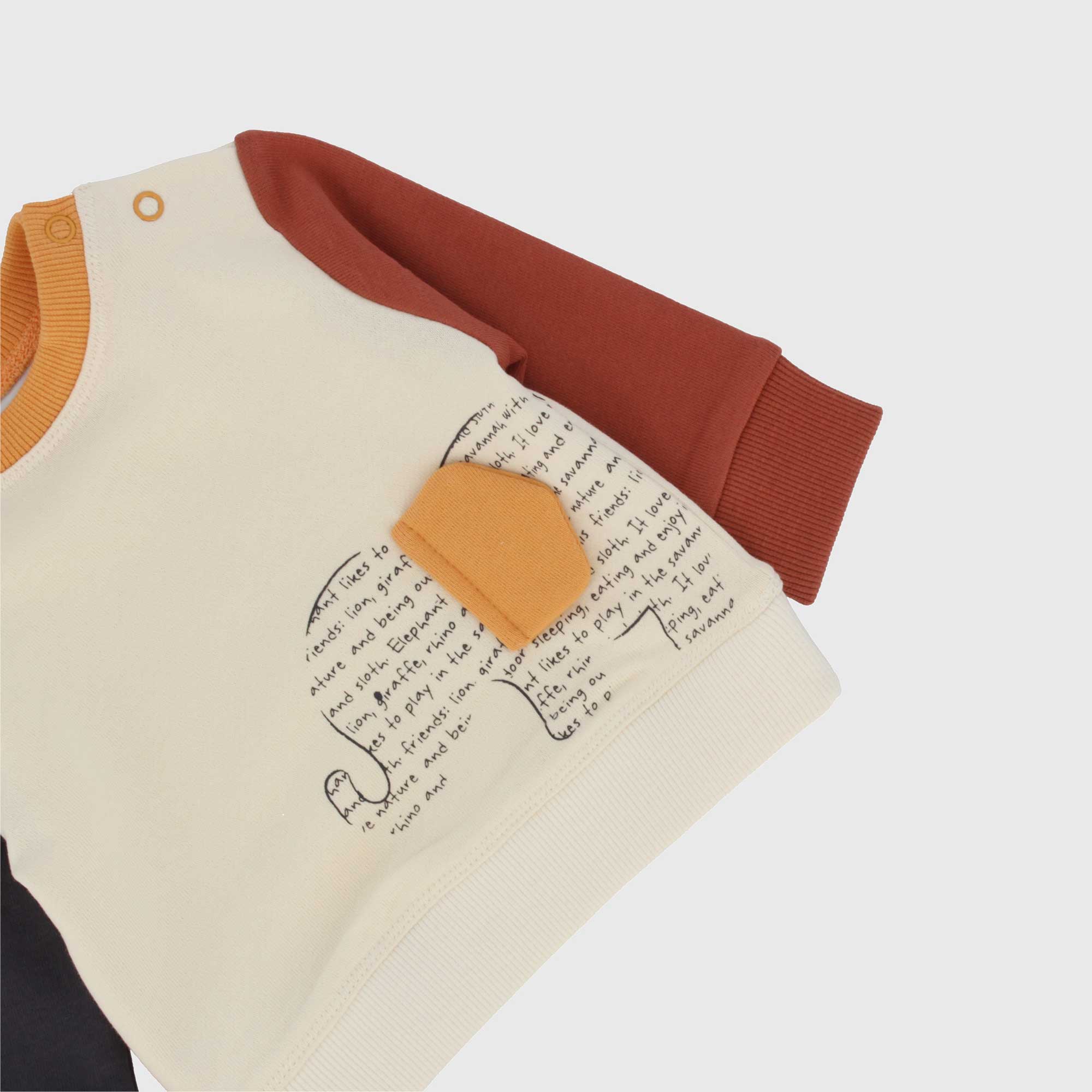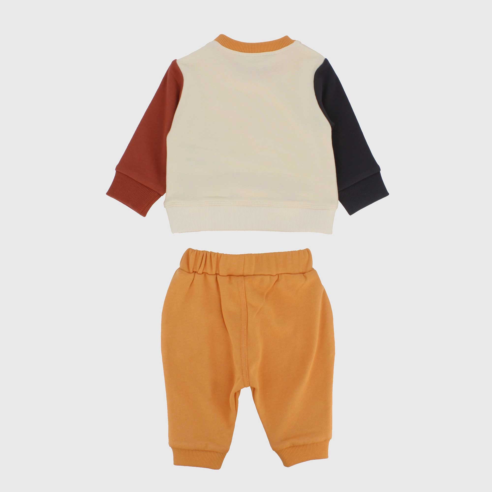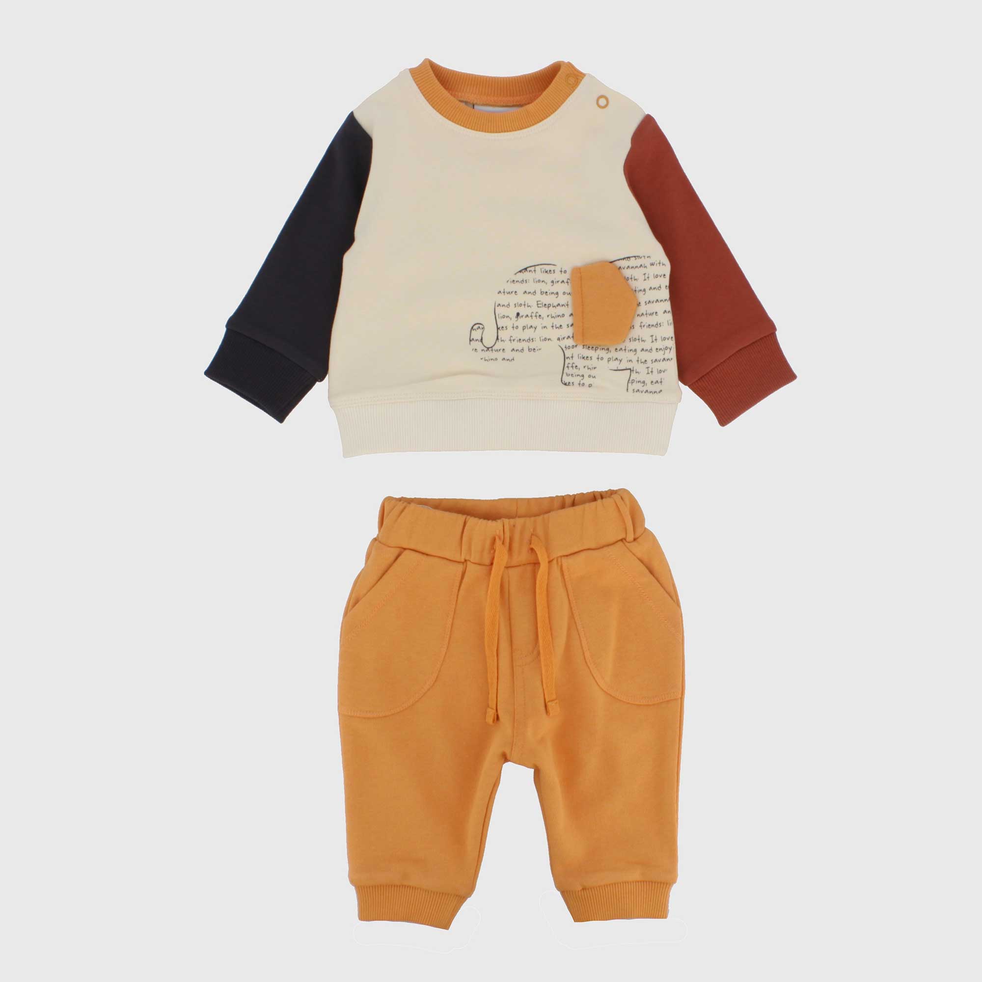 Набор состоящий из двух штук. Толстовка с круглым вырезом и длинными рукавами. Застежка на кнопки на плече. Принт и аппликация спереди. Ребристые манжеты и низ. Флисовые брюки с эластичной талией и шнурками спереди